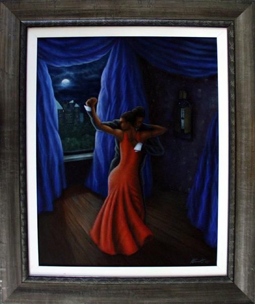Artist: Answerd Stewart Title: This MomentMedium: Acrylic on canvas, framedDate: 2007Full size: 37 x 31 inchesImage size: 28 x 22 inchesBiography * * With a hint of humility and the meek style of a self-taught, self-driven artist, he says the subject's priceless expressions - like the ones depicted in the father and son bonding in "Priceless" - are the fuel upon which his creative engines run. And with his visual serenades to the themes of love, spirituality, social consciousness and music, the common themes that weave most of his paintings together, Stewart's recent pieces, 'Rise Up' and 'Change Winds', even delve to explore the cultural and political pulses Stewart no doubt has his fingers on. Delicately and defly balancing pen and ink, acrylic paints and opaque washes, Stewart's skills have sharpened exponentially in the 15 years he has been at it with curators and a cadre of local and international buyers lining up to walk away with a piece of him. * * Received from: http://www.answerdstewart.com/bio-cv/ *