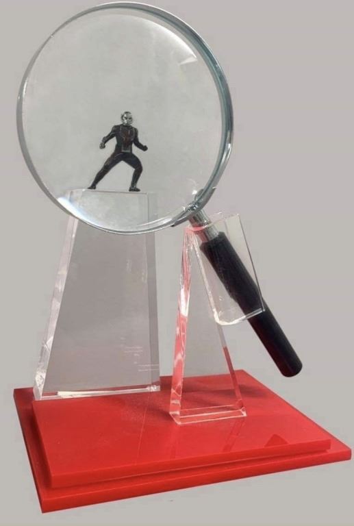 Original one of a kind miniature Ant-Man replica display based on the superhero film "Ant-Man" (2015), where, armed with a super-suit with the astonishing ability to shrink in scale but increase in strength, cat burglar Scott Lang must embrace his inner hero and help his mentor, Dr. Hank Pym, plan and pull off a heist that will save the world.