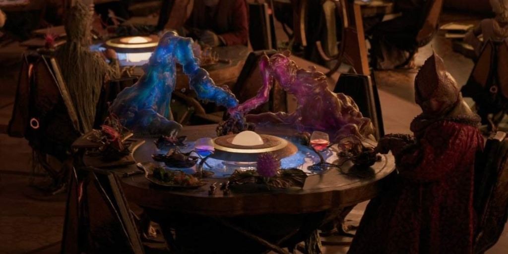 Original table set decoration used in the Bill Murray bar/restaurant meeting scene in the Peyton Reed directed superhero film 'Ant-Man and the Wasp: Quantumania' (2023), where Ant-Man (Paul Rudd) and Van Dyne (Evangeline Lilly) are transported to the Quantum Realm along with their family and face Kang the Conqueror (Jonathan Majors).