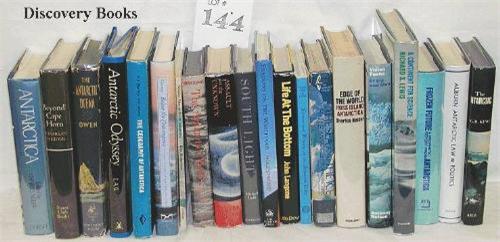 Antarctica, General. (1) Neider, Charles, editor. ANTARCTICA. AUTHENTIC ACCOUNTS OF LIFE AND EXPLORATION …… New York, (c.1972) 459pp. Cloth, fine in d/j. (2) Neider, Charles. BEYOND CAPE HORN. TRAVELS IN THE ANTARCTIC. San Francisco, (c.1980) 387pp. Illus. Cloth, very good in d/j. (3) Owen, Russell. THE ANTARCTIC OCEAN. New York, (c.1941) 254pp. Illus. Cloth, very good in d/j. (4) Law, Phillip. ANTARCTIC ODYSSEY. Melbourne, (1983) 284pp. Illus. Cloth, very good in d/j. (5) Markov, K. K., V. I. Bardin, et.al THE GEOGRAPHY OF ANTARCTICA. Jerusalem, 1970 370pp. Maps, folding map. Cloth, very good in d/j. (6) Gurney, Alan. BELOW THE CONVERGENCE. VOYAGES TOWARD ANTARCTICA 1699-1839. New York, (c.1997) 315pp. Maps. Cloth, fine in d/j. (7) Bechervaise, John. SCIENCE; MEN ON ICE IN ANTARCTICA. Melbourne, (c.1978) 104pp. Illus. Softbound, very good. (8) Mountevans, Adm. Lord. THE ANTARCTIC CHALLENGED. New York, (c.1956) 247pp. Illus. Cloth, very good in d/j. (9) Sullivan, Walter. ASSAULT ON THE UNKNOWN. THE INTERNATIONAL GEOPHYSICAL YEAR. New York, (c.1961) 460pp. Illus. Cloth, very good in chipped d/j. (10) Parfit, Michael. SOUTH LIGHT. A JOURNEY TO THE LAST CONTINENT. New York: (c.1985) 306pp. Cloth, fine in d/j. (11) Stroud, Mike. SHADOWS ON THE WASTELAND. New York, (1994) 182pp. Illus. Cloth, fine in d/j. (12) Langone, John. LIFE AT THE BOTTOM. THE PEOPLE OF ANTARCTICA. Boston, (c.1977) 262pp. Cloth, very good in d/j. (13) Green, Bill. WATER, ICE & STONE. New York, (c.1995) Uncorrected proof. 258pp. Softbound, very good. (14) Halle, Louis J. THE SEA AND THE ICE. A NATURALIST IN ANTARCTICA Boston, 1973 286pp. Illus. Cloth, ex.lib., else good in torn d/j. (15) Neider, Charles. EDGE OF THE WORLD. ROSS ISLAND, ANTARCTICA. New York, 1974 461pp. Illus. Cloth, very good in d/j. (16) Fuchs, Sir Vivian. OF ICE AND MEN. THE STORY OF THE BRITISH ANTARCTIC SURVEY 1943-73. (Shropshire , 1982) 383pp. Illus. Cloth, fine in d/j. (17) Lewis, Richard S. A CONTINENT FOR SCIENCE. THE ANTARCTIC ADVENTURE. NewYork, (c.1965) 300pp. Illus. Cloth, very good in d/j. (18) Lewis, Richard S. & Philip M. Smith. FROZEN FUTURE. A PROPHETIC REPORT FROM ANTARCTICA. New York, (c.1973) 455. Illus. Cloth, fine in d/j. (19) Auburn, F. M. ANTARCTIC LAW AND POLITICS. Bloomington, IN, (c.1982) 361pp. Cloth, fine in d/j. (20) King, H. G. R. THE ANTARCTIC. New York, (c.1969) 276pp. Illus. Cloth, very good in d/j. (20)