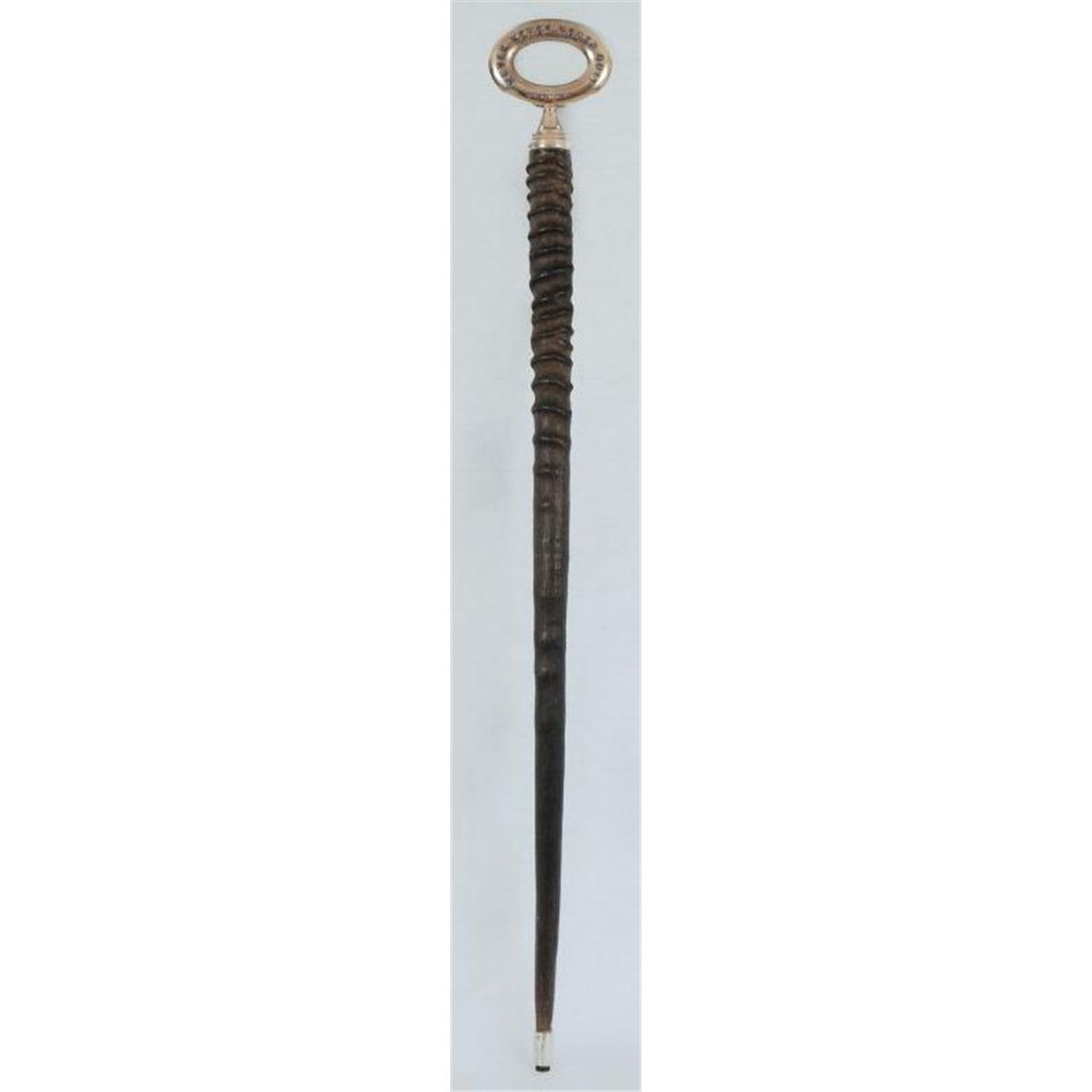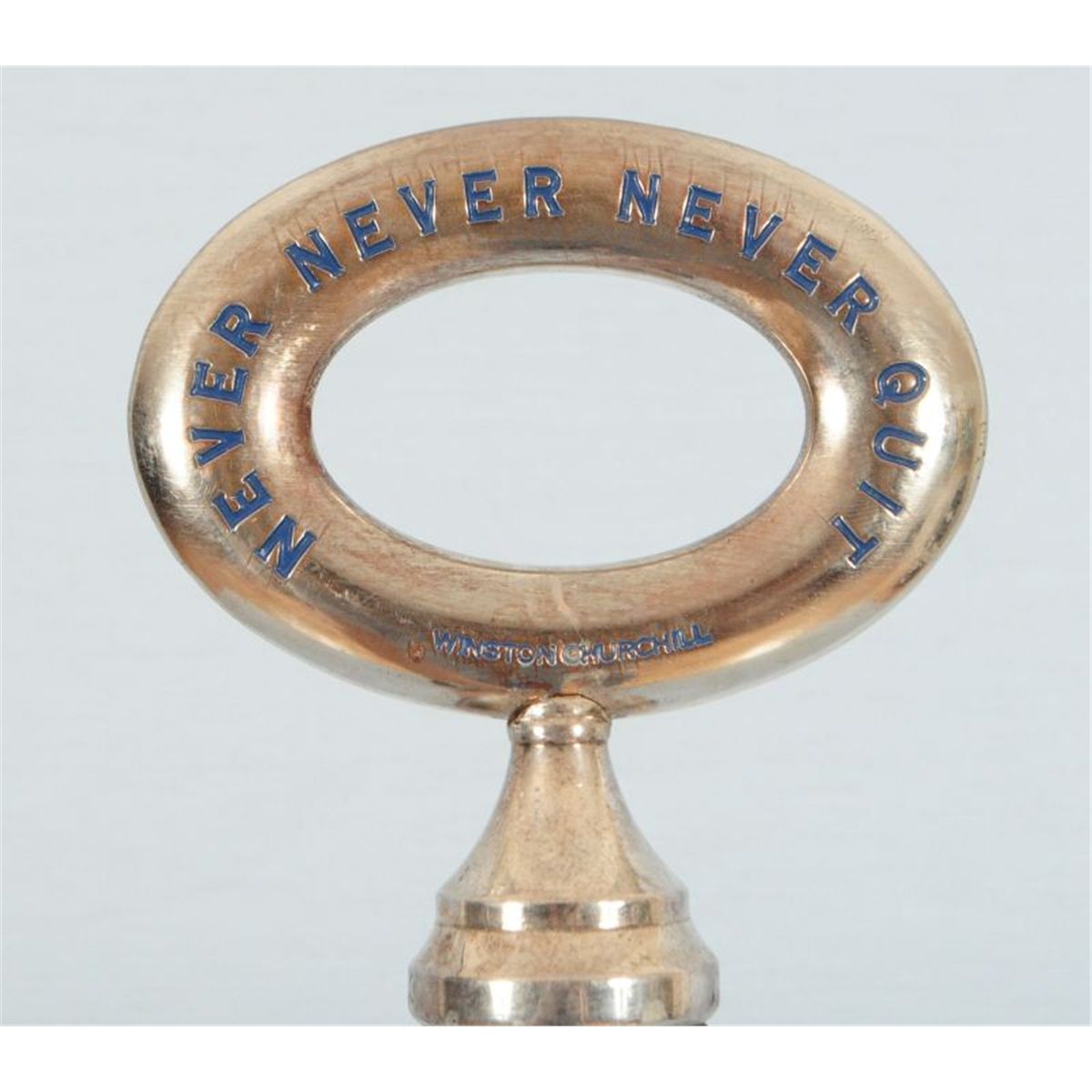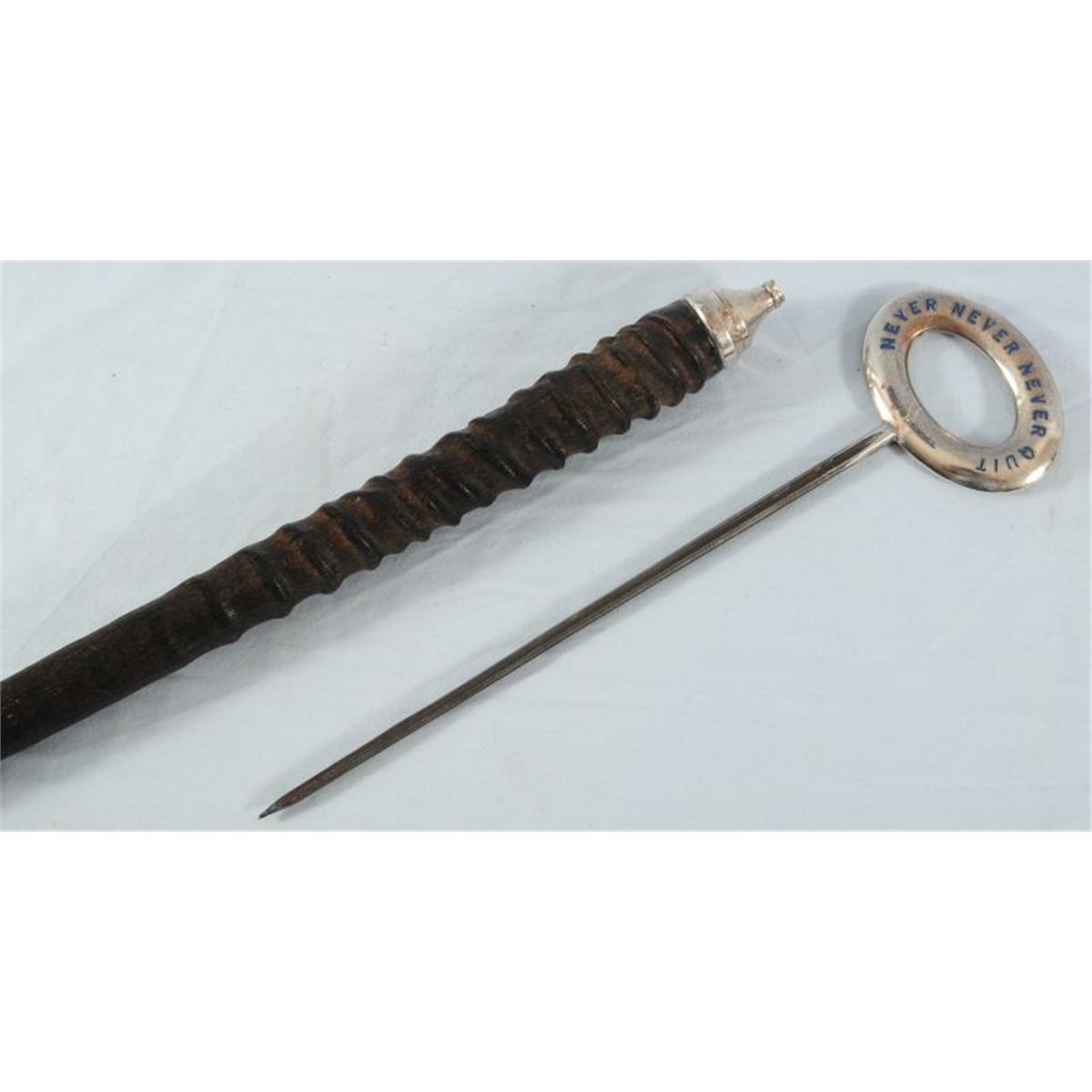 Waking Stick with Hidden Spike Handle. "Never, Never, Never Quit - Winston Churchill" on Handle. Total Length 36" Long. Total Length of Spike (including handle) 15 3/4" long.