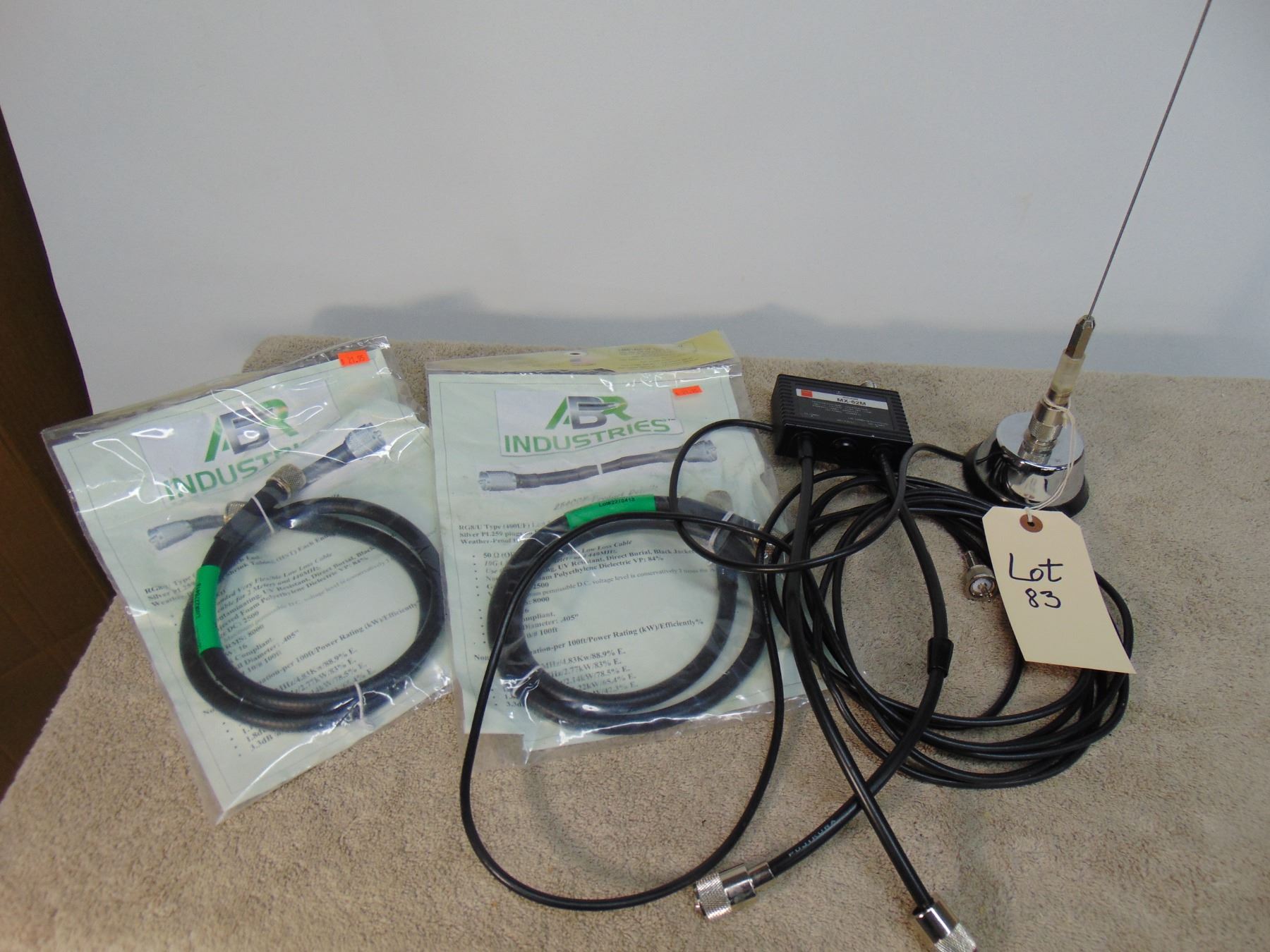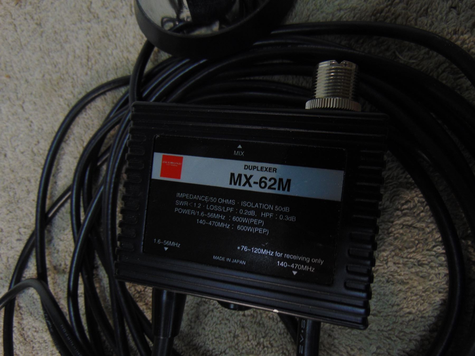 Two meter mobile whip; Diamond duplexer (2 meter); 2 ABR Industries connector cables (new)