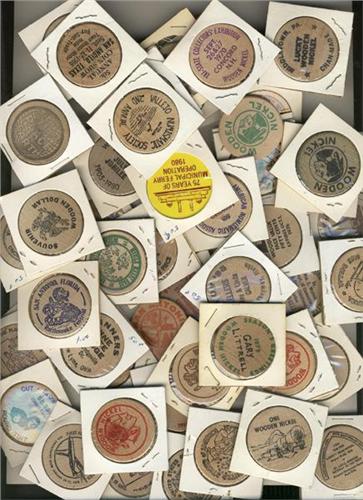 Large miscellaneous vintage collection of approximately 350 pieces mostly USA wooden tokens. Great mix , unsearched (no return).