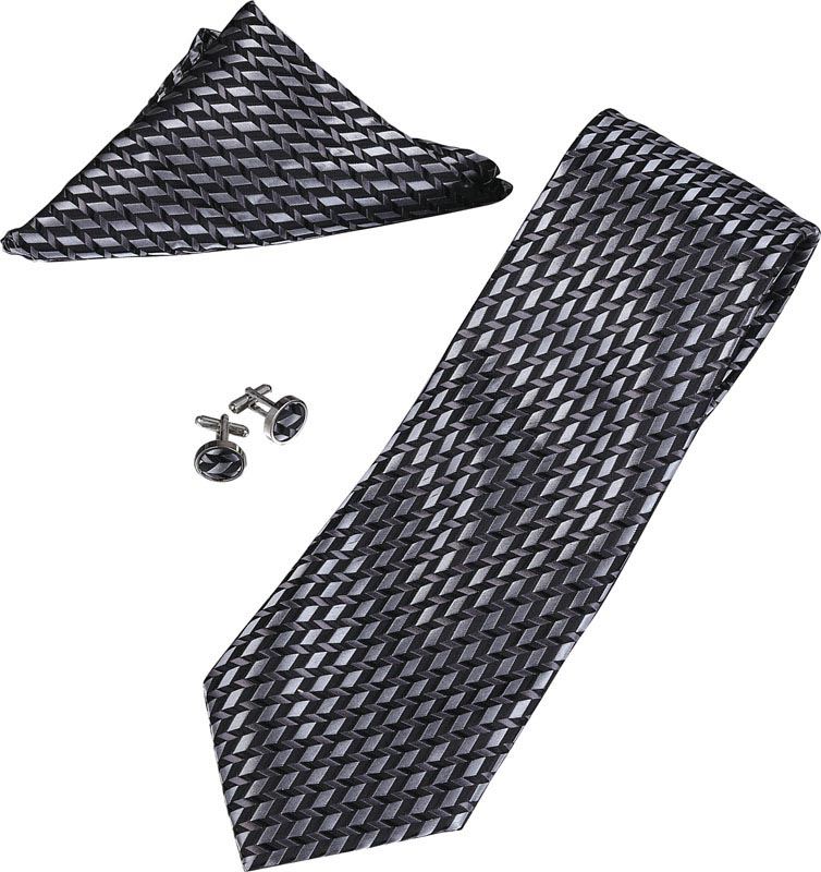 Anthony Grey and Black Stripe Pattern Tie, Cufflinks an **|**|** Anthony Grey and Black Stripe Pattern Tie, Cufflinks and Pocket Square Gift Set