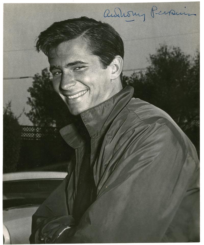 Vintage glossy 7.75 x 9.5 photo of Perkins posing outdoors, signed in fountain pen. In fine condition, with lightly trimmed edges and some light rippling along top edge. Pre-certified PSA/DNA and RRAuction COA.