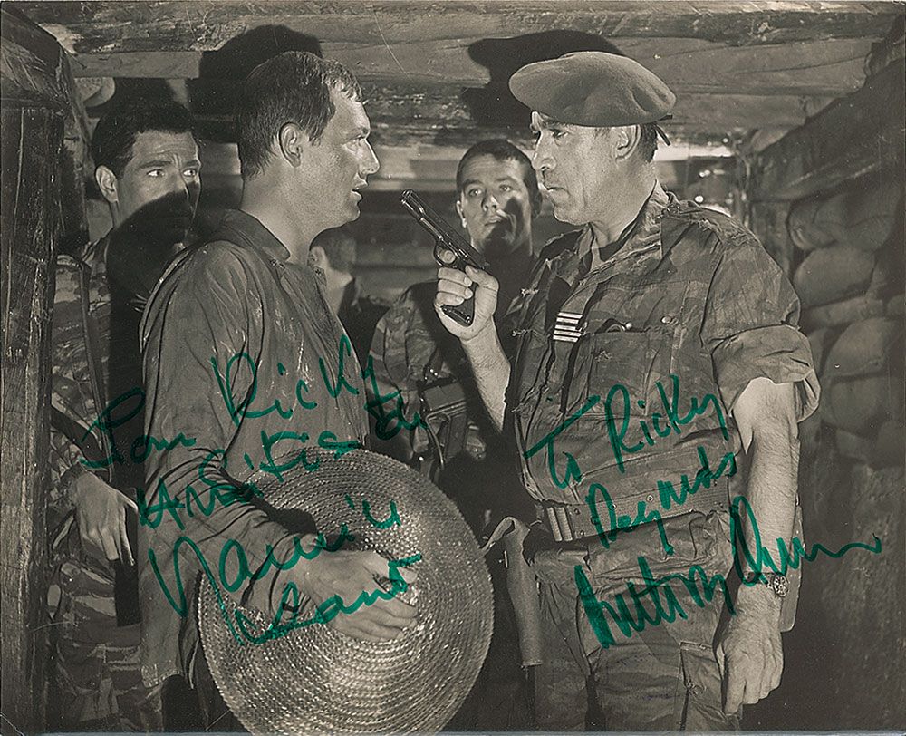 Glossy 10 x 8 photo from Lost Command, signed and inscribed in green felt tip by Anthony Quinn and Maurice Ronet. In fine condition, with some minor edge curling. Consignor notes that the signature was obtained in person in either Italy or Spain during the mid to late 1960s.