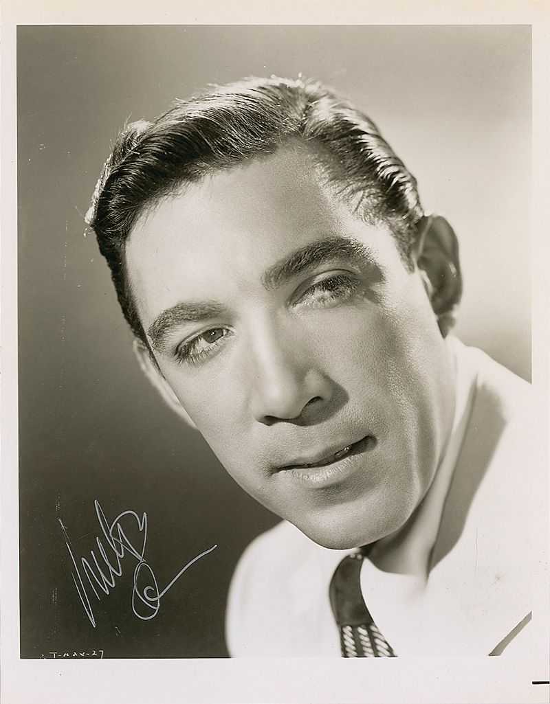 Glossy 8 x 10 head-and-shoulders photo of a young Quinn, signed in silver ink. In fine condition, with slight dings to left edge.