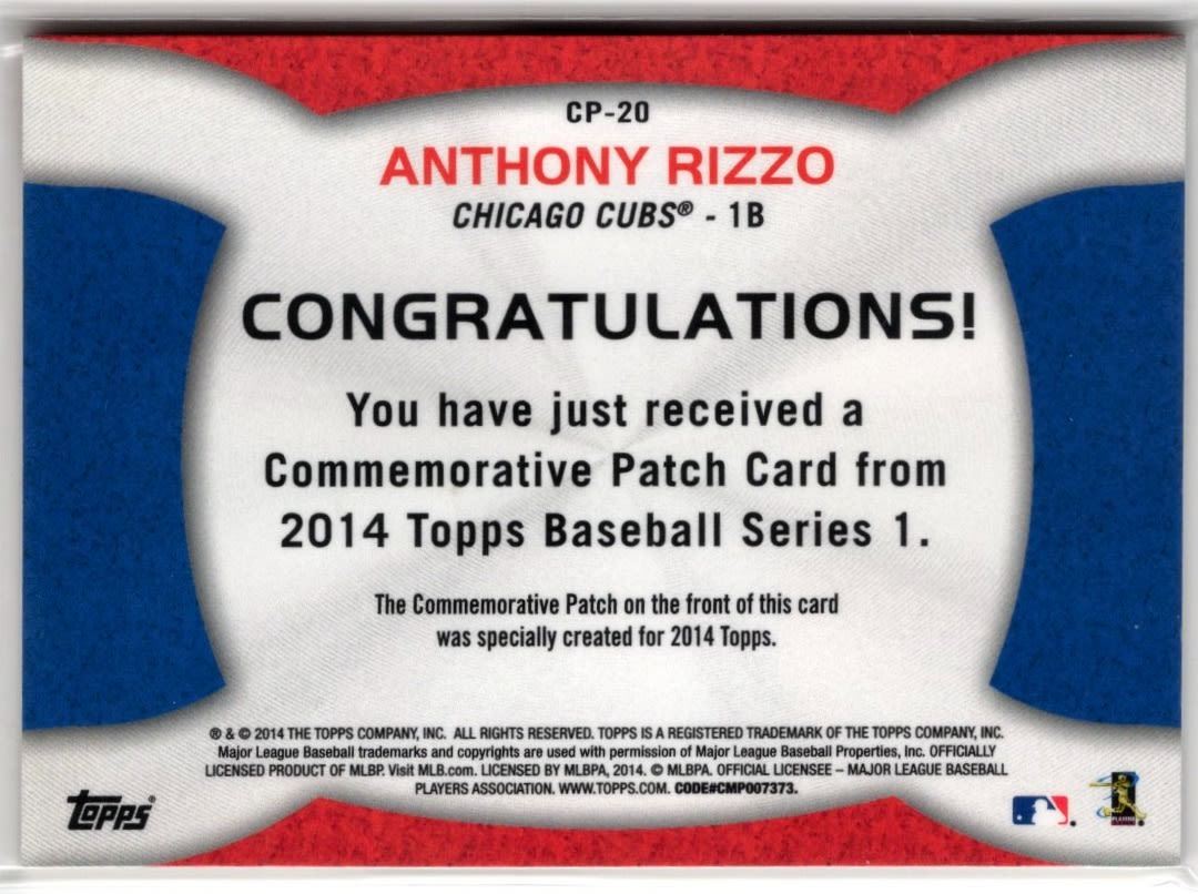 Anthony Rizzo 2014 Topps Commemorative Patch #CP-20