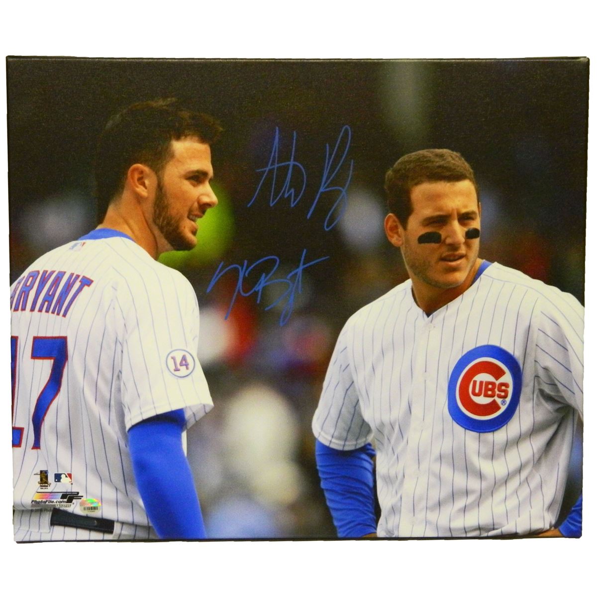 Anthony Rizzo and Kris Bryant dual signed Chicago Cubs 20x24 canvas. The canvas is an overall size of 20x24 and comes stretched on a board. Item comes with a Fanatics Authentics tamper-proof numbered hologram and Certificate of Authenticity which can be verified online.