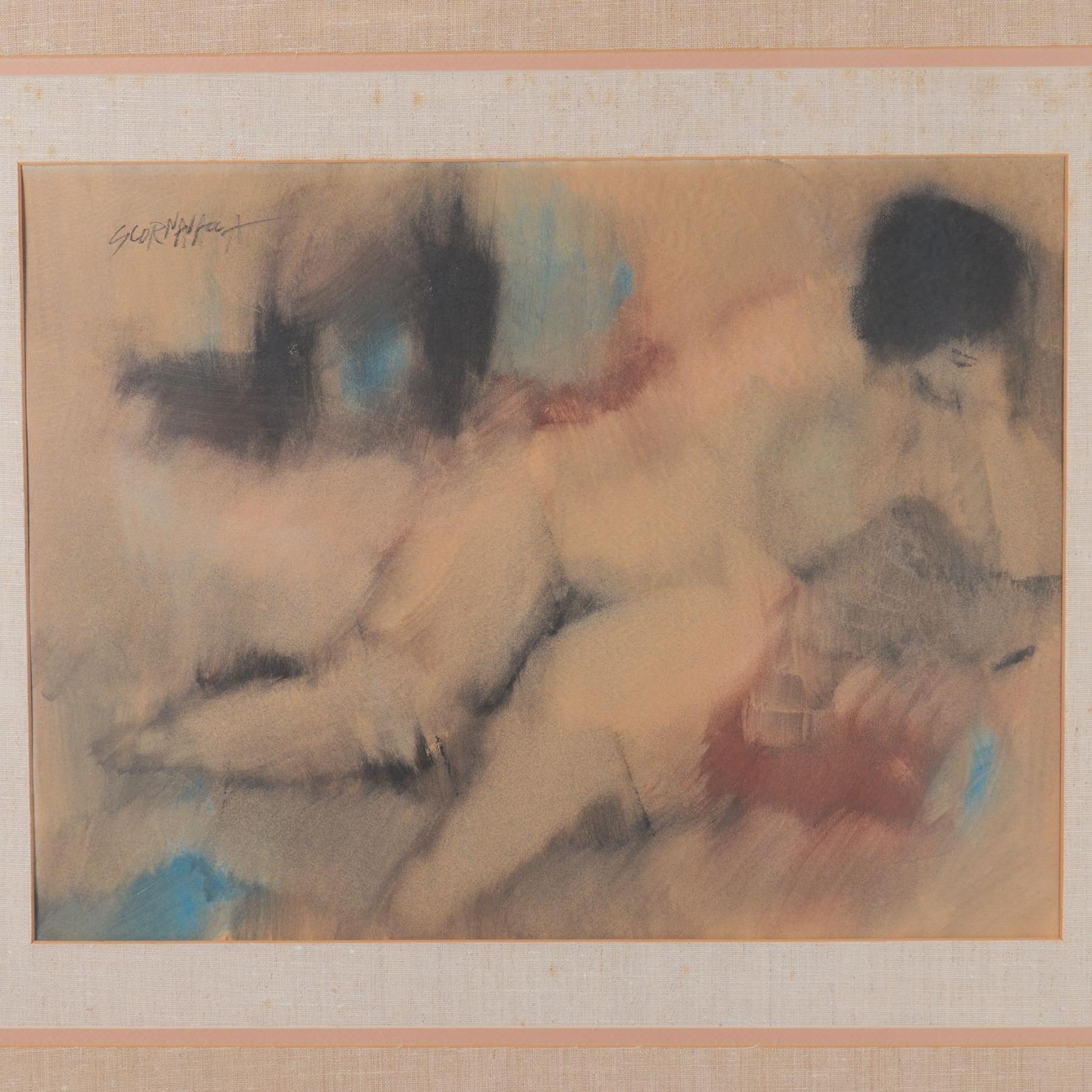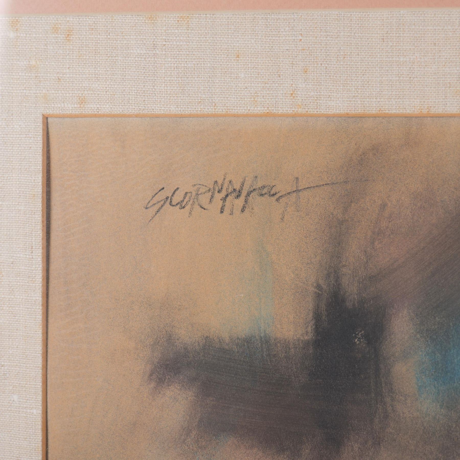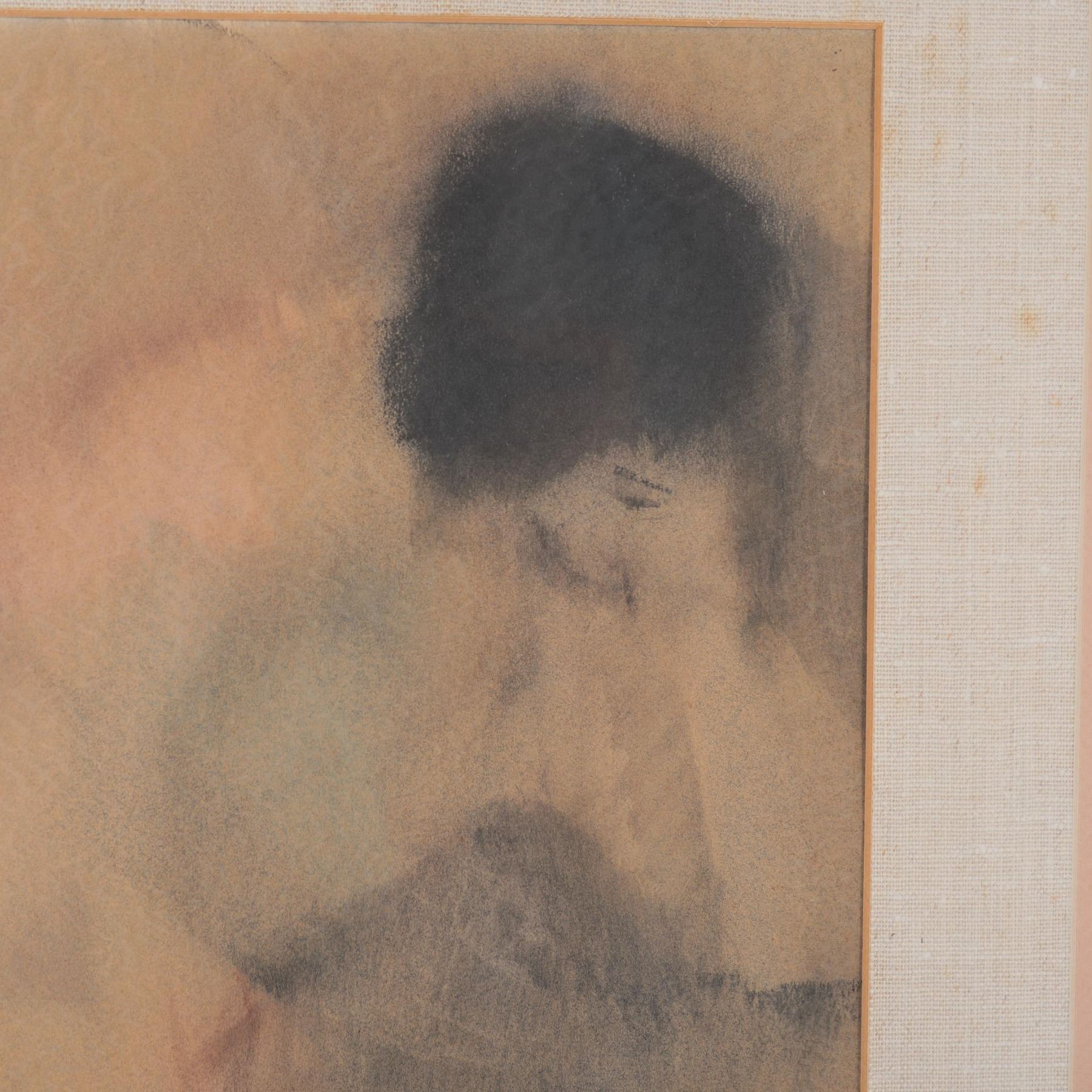 Large charcoal and pastel on paper depicting an intimate portrayal of a nude woman by American Contemporary artist Anthony Scornavacca, one of the founders of the Coconut Grove Arts Festival in 1962. Signature on upper left: Scornavacca. Housed in a reflective metallic frame with linen mats. Artwork dimensions: 23"L x 17.50"H. Frame dimensions: 37.50"L x 32.25"H x 1"W. Artwork can be unframed and rolled for shipment.