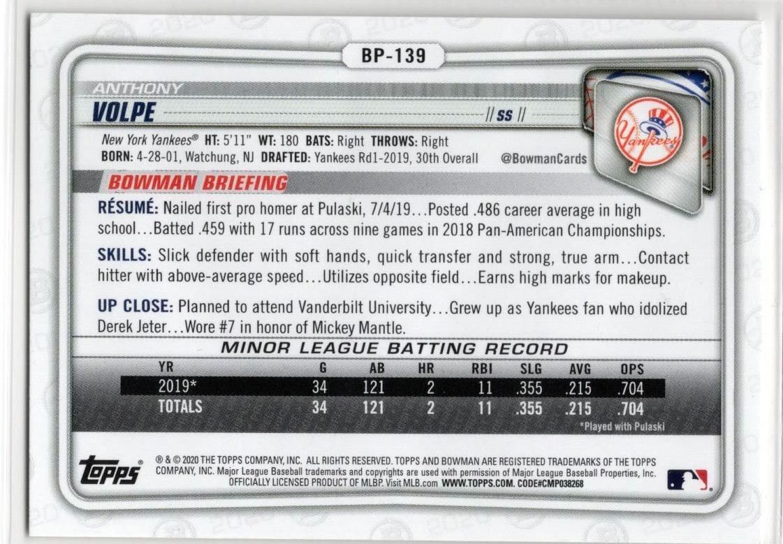 Anthony Volpe 2020 Bowman Chrome 1st Bowman #BCP-139
