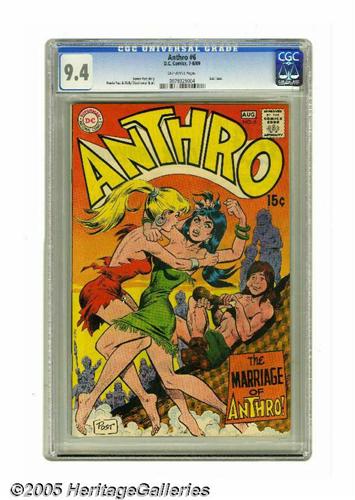 <B>Anthro #6 (DC, 1969) CGC NM 9.4 Off-white pages.</B></I> Last issue. Art by Howie Post and Wally Wood. Overstreet 2005 NM- 9.2 value = $48. CGC census 3/05: 3 in 9.4, none higher.