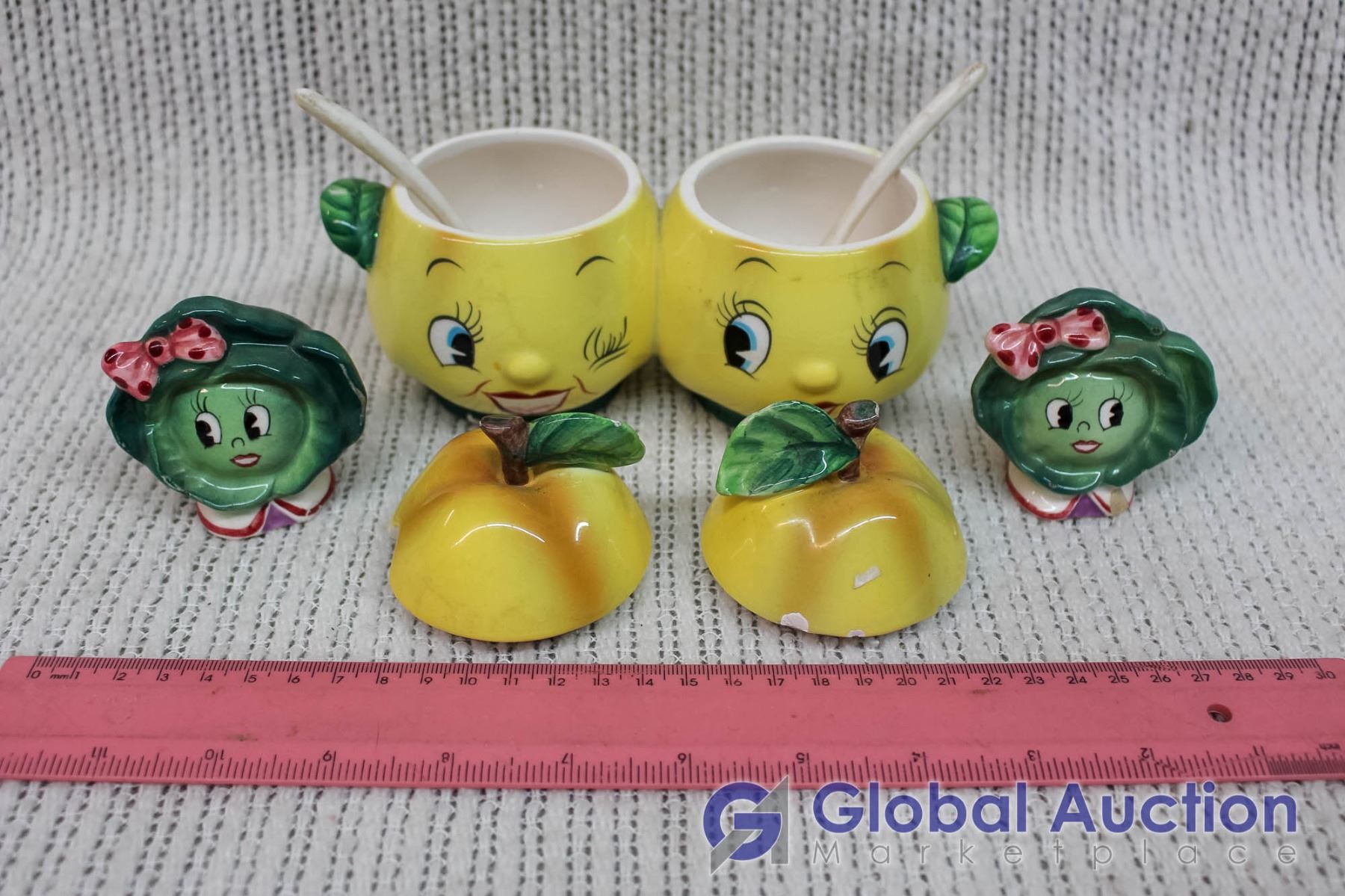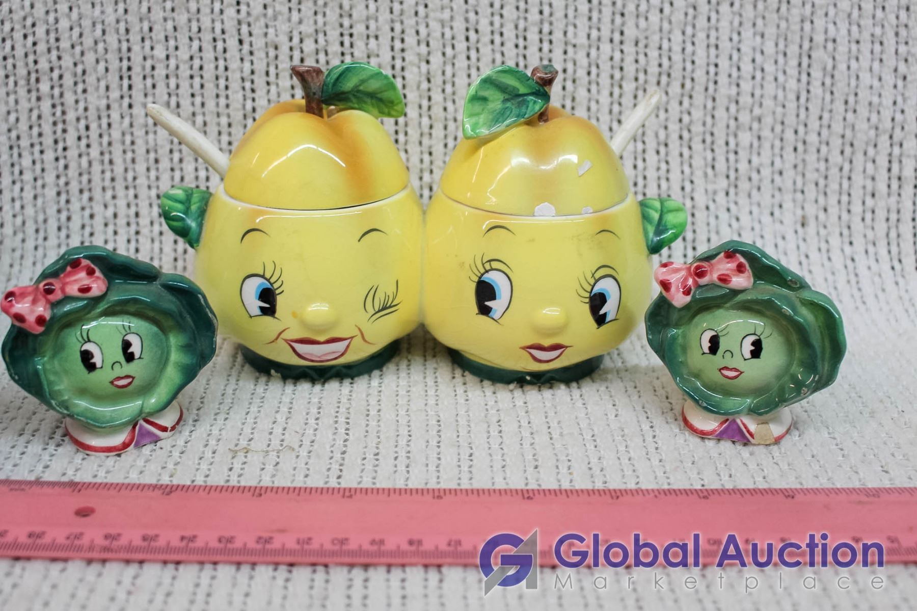 Anthropomorphic Salt/Pepper Shakers and Condiments Set