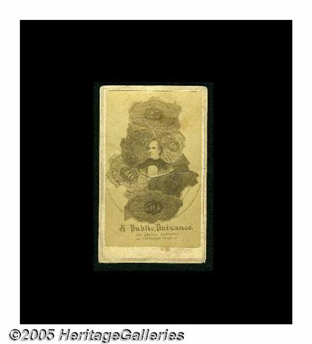 <B>Anti-Fractional Photograph.</B></I> A composite CDV size photo showing Secretary Chase superimposed on a group of ratty First Issue Notes. The term "a public nuisance" appears below the photo.