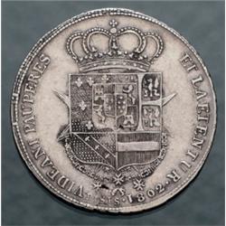 Regno d'Etruria - Ludovico I di Borbone (1801-1803) - Francescone 1802 - Varie imperfezioni del tondello - millesimo raro
