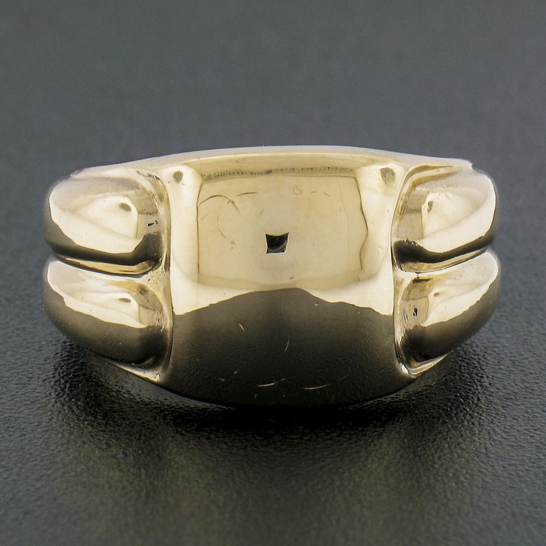 An antique solid 10k yellow gold ring. The ring is size 7.0, weighs a total of 11.38 grams, and measures 12.2mm wide.