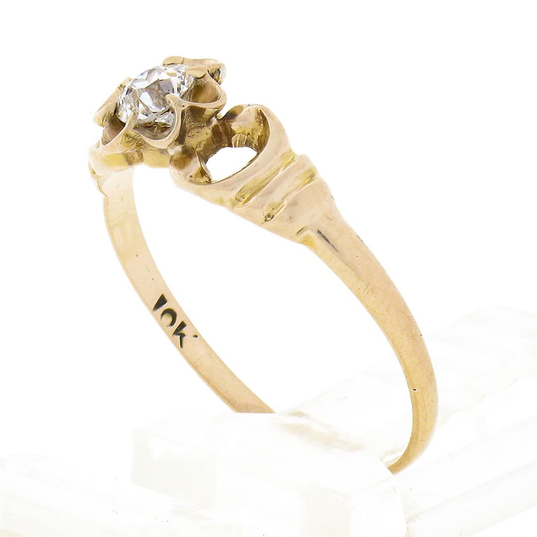 An antique solid 10k yellow gold engagement ring, with 1 old european cut natural diamond (G - VS2 ; 0.25ct). The ring is size 7.5, weighs a total of 1.32 grams, and measures 6.65mm wide.