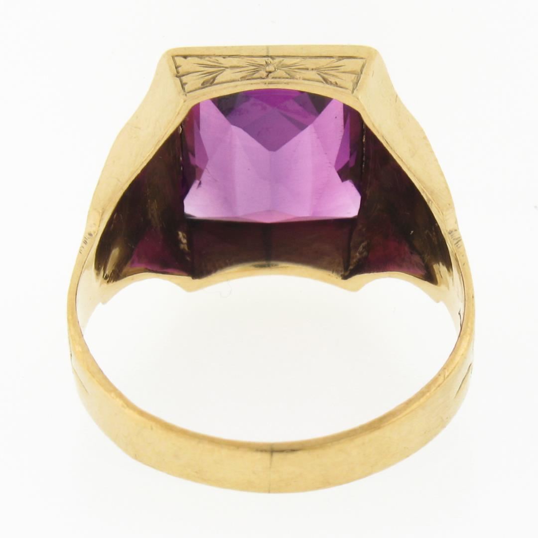 Antique 10k Gold Rectangular Bezel Set Purple Stone Solitaire Hand Engraved Ring