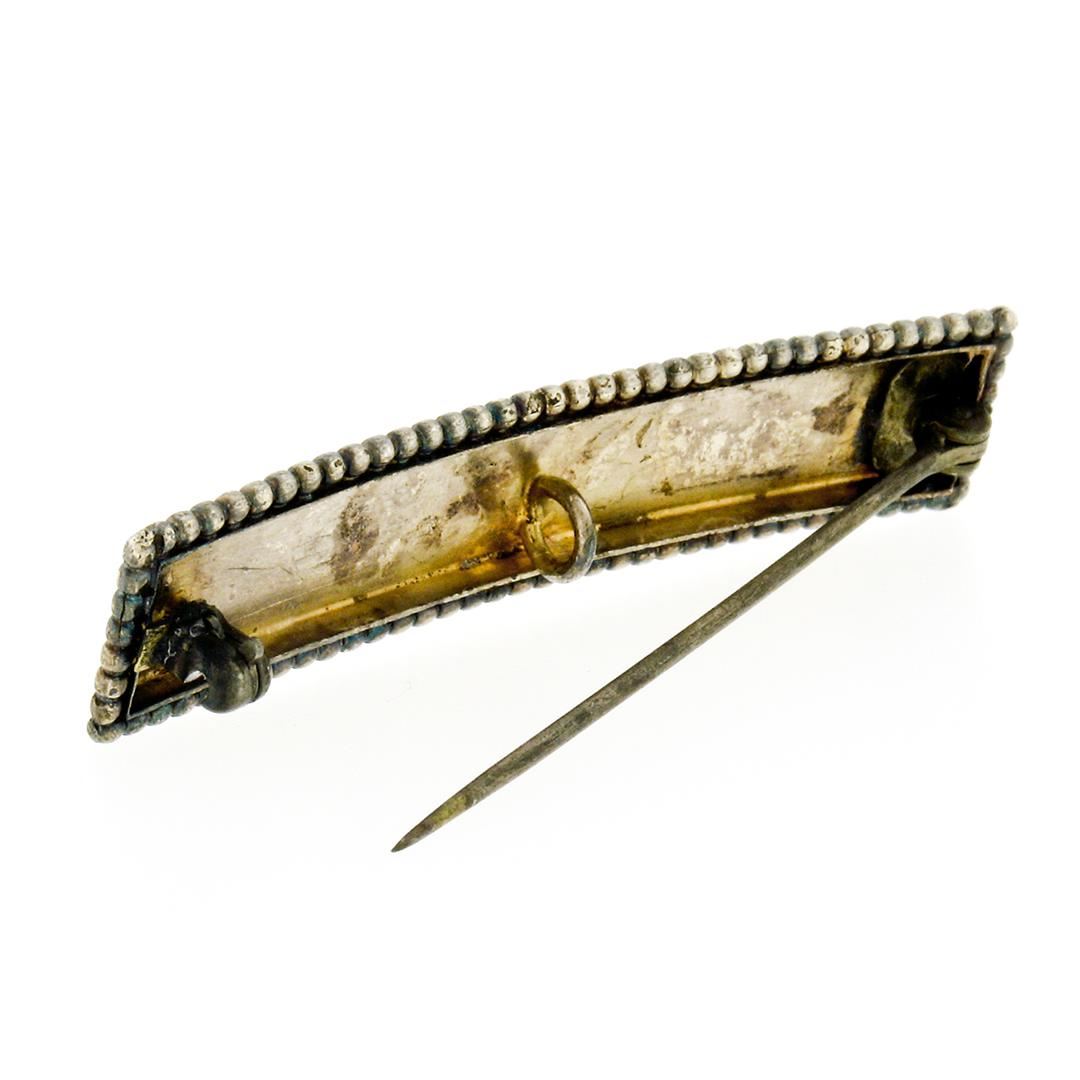 Antique 14K Gold Hand-Engraved Bird & Floral Work Beaded Frame Bar Pin Brooch