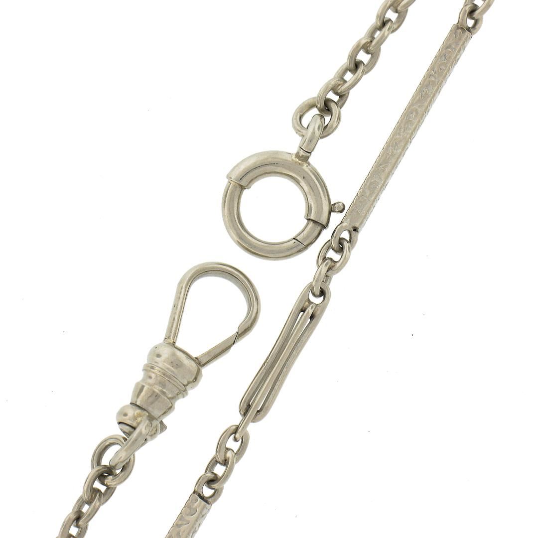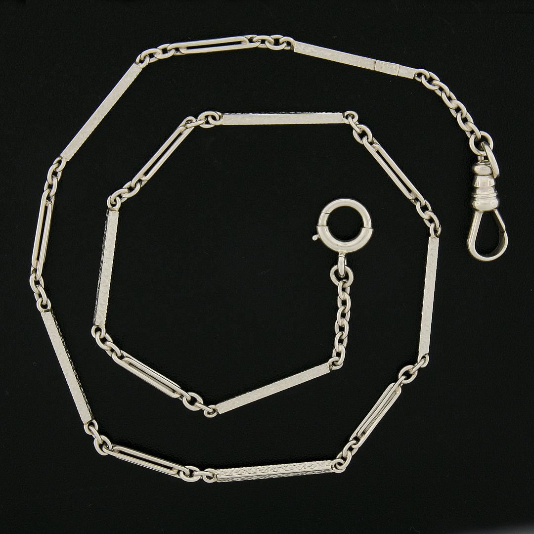 An antique solid 14k white gold pocket wacth chain necklace. It weighs a total of 8.86 grams, measures 2.3mm wide, and measures 14 inches in length.