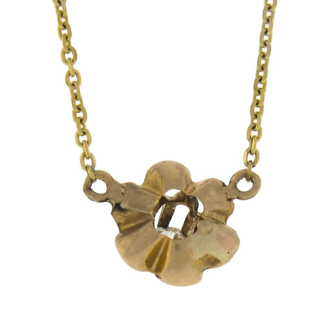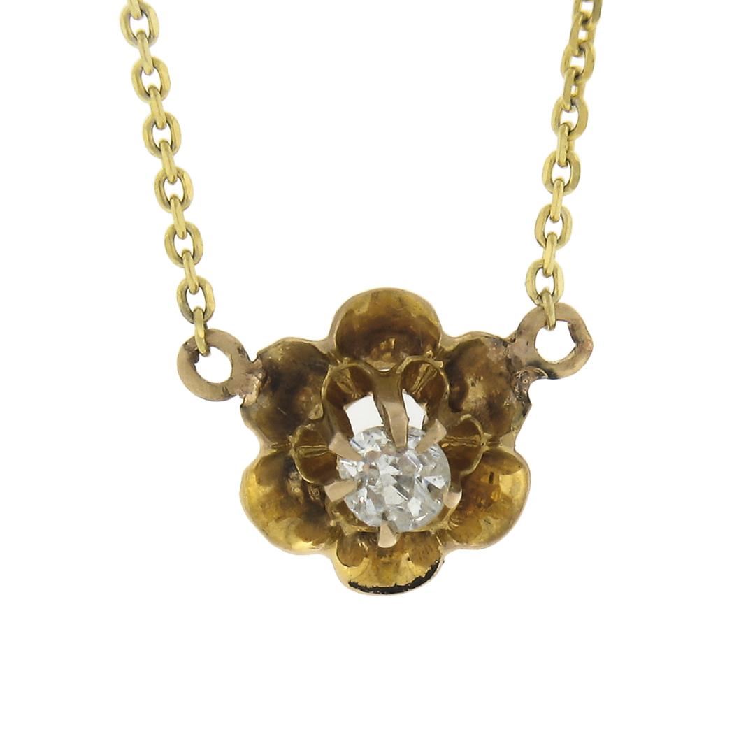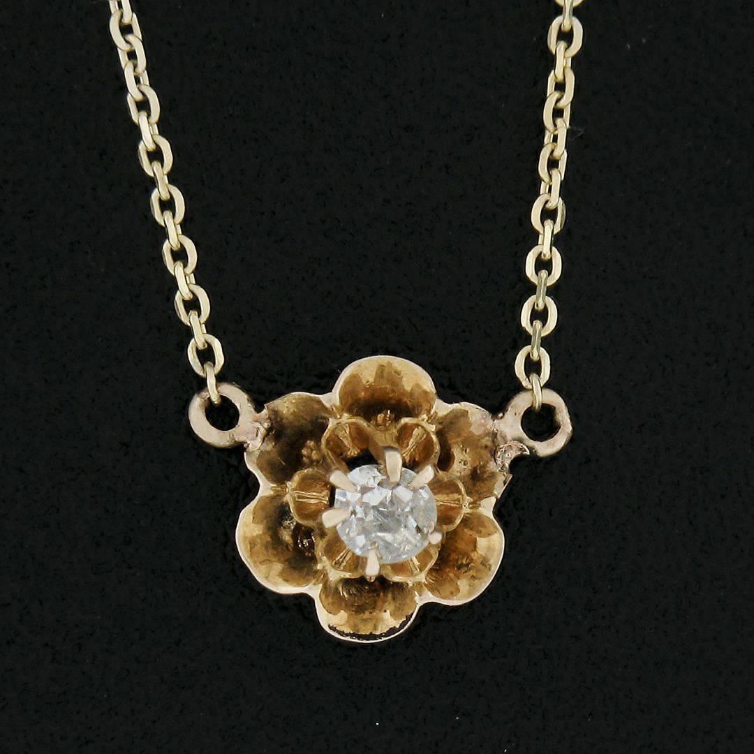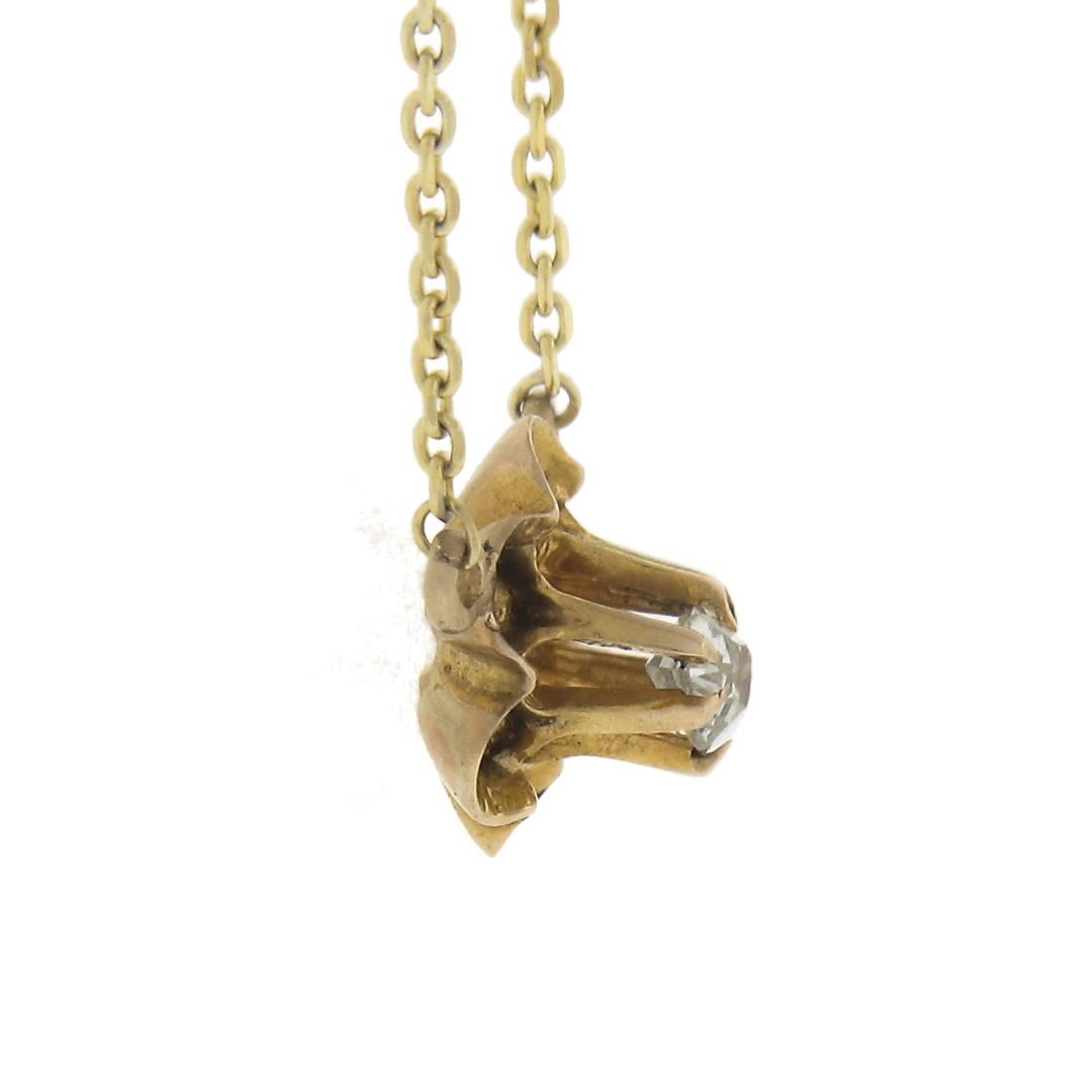 Antique 14k Gold 0.03ctw Buttercup Diamond Solitaire Pendant w/ Adjustable Chain