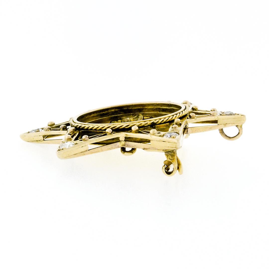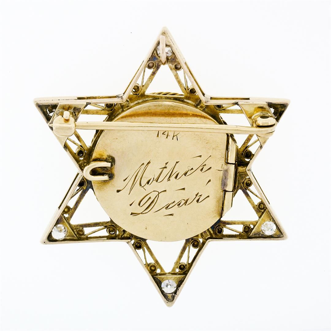 An antique solid 14k yellow gold star of david brooch locket pendant, featuring 6 old european cut natural diamonds (G/H - VS1/VS2 ; 0.50ctw). Measures 39.6x34.45mm and weighs a total of 7.51 grams.