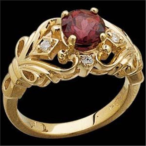 <tr><td>Title:Antique 14k Gold Ring GARNET DIAMONDS </td></tr>