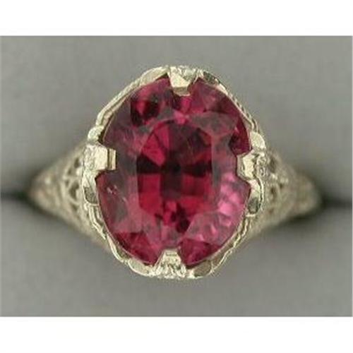 Antique 14k White Gold ring featuring a Genuine Oval GARNET = 3 CARATS! This stunning Garnet is surrounded by exquisite filigree work. The ring is a size 6 and I can resize it for you. It is in Mint condition.