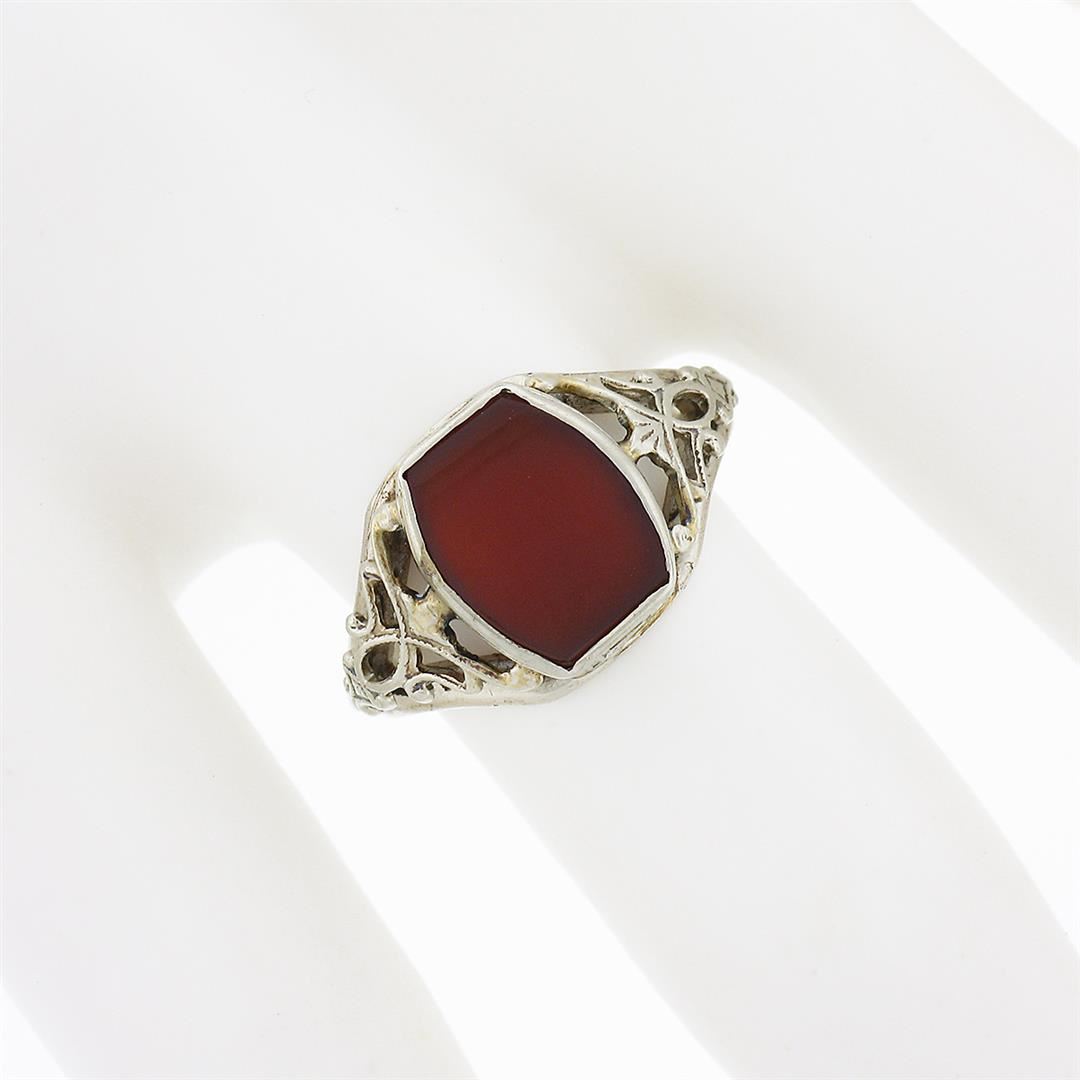 Antique 14k White Gold Bezel Custom Carnelian Solitaire Filigree Open Work Ring