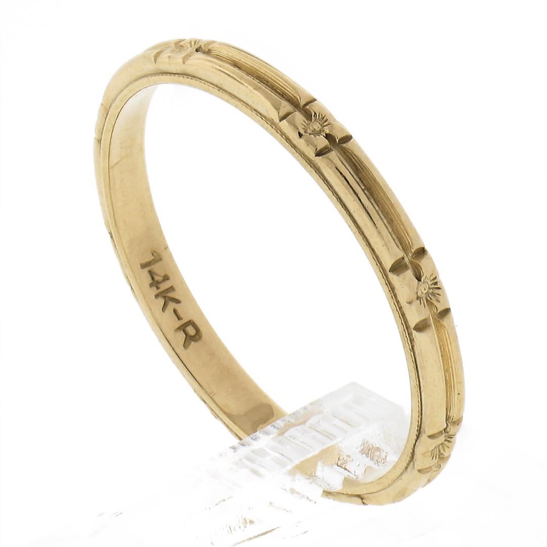 Antique 14k Yellow Gold Detailed Engraved Floral Work Eternity Stack Band Ring