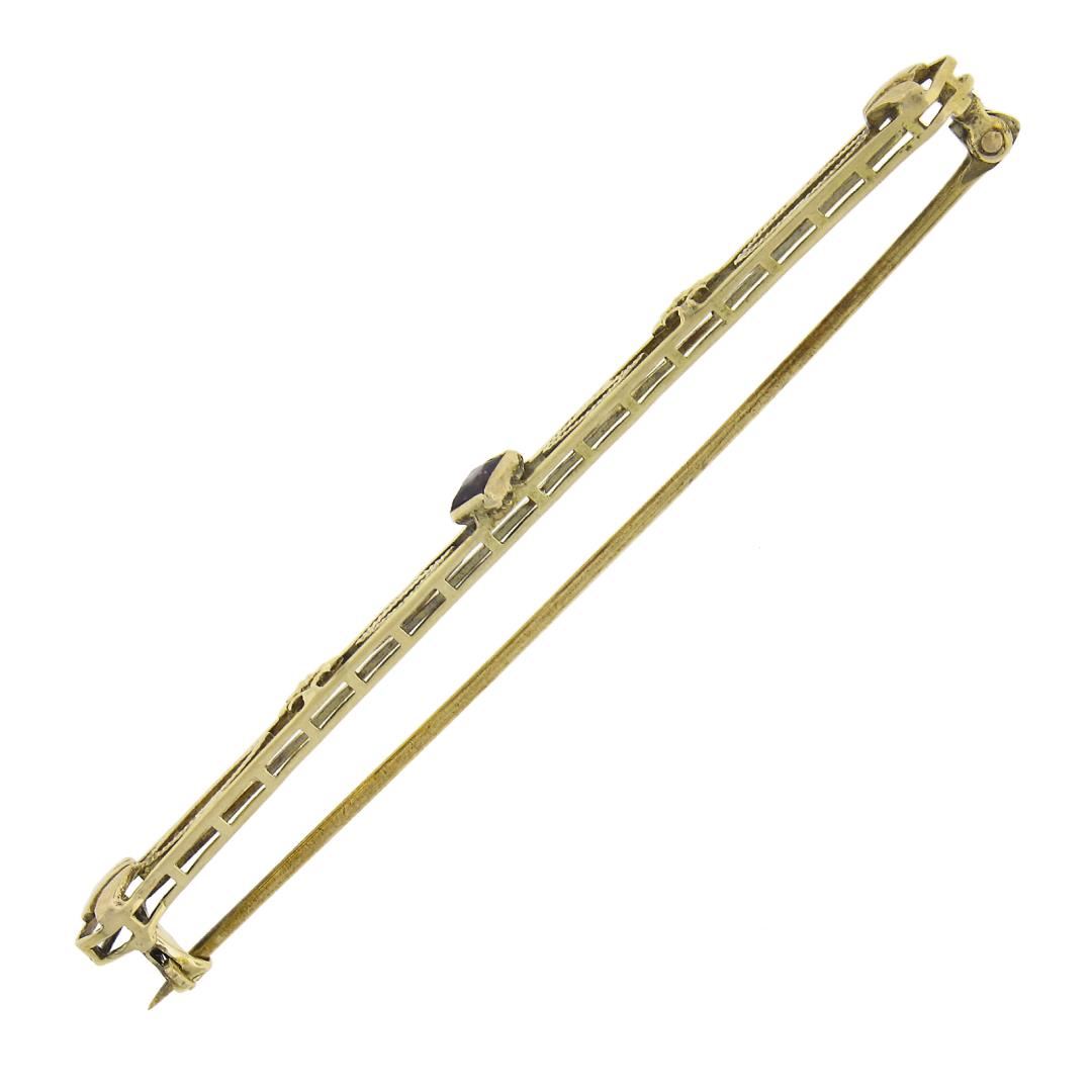 Antique 14k Yellow Gold Square Step Cut Amethyst Open Work Design Bar Pin Brooch