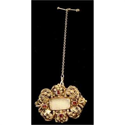 Cannetile is a type of metal decoration on jewelry in the form of thin wires making a course filigree pattern, sometimes enhanced with a gemstones or enamelling. This brooch is 15K and approximately 200 years old. Has original white hair under glass. The condition is absolutely extraordinary. It has the original safety catch. 4 natural cushion cut rubies, tested with refractive index liquid. Total ruby weight is approximately .75 carats. A superb piece of antique jewelry, for the serious collector.