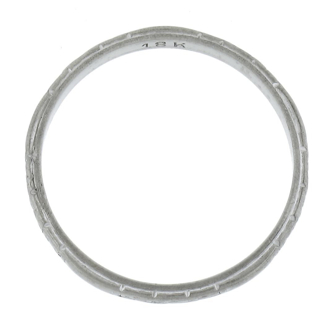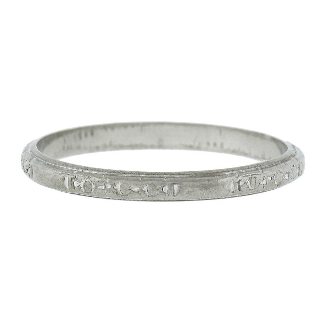 An antique solid 18k white gold band ring. The ring is size 7.25, weighs a total of 1.61 grams, and measures 2.1mm wide.