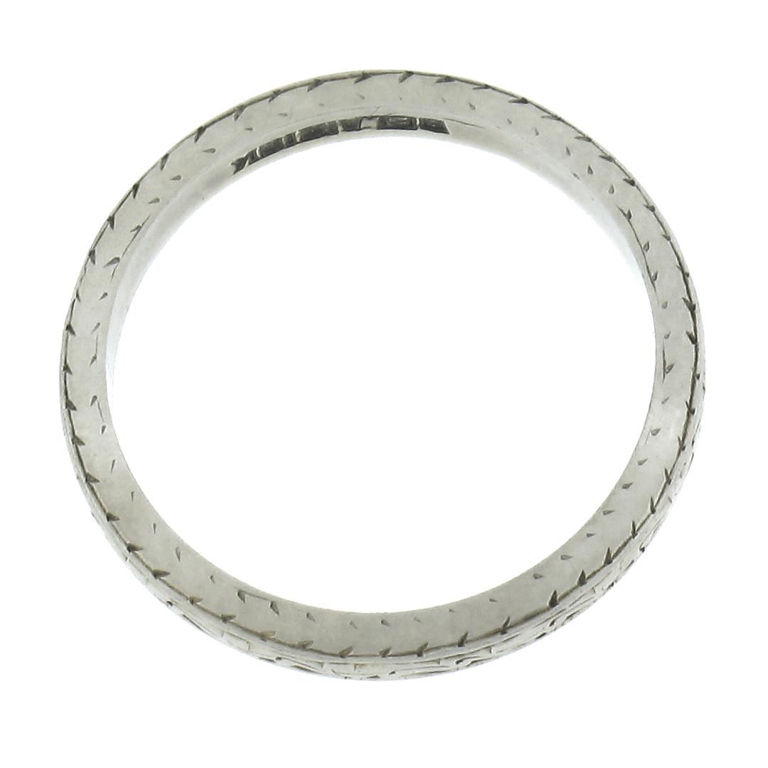 An antique solid 18k white gold band ring. The ring is size 5.25, weighs a total of 2.23 grams, and measures 2.3mm wide.