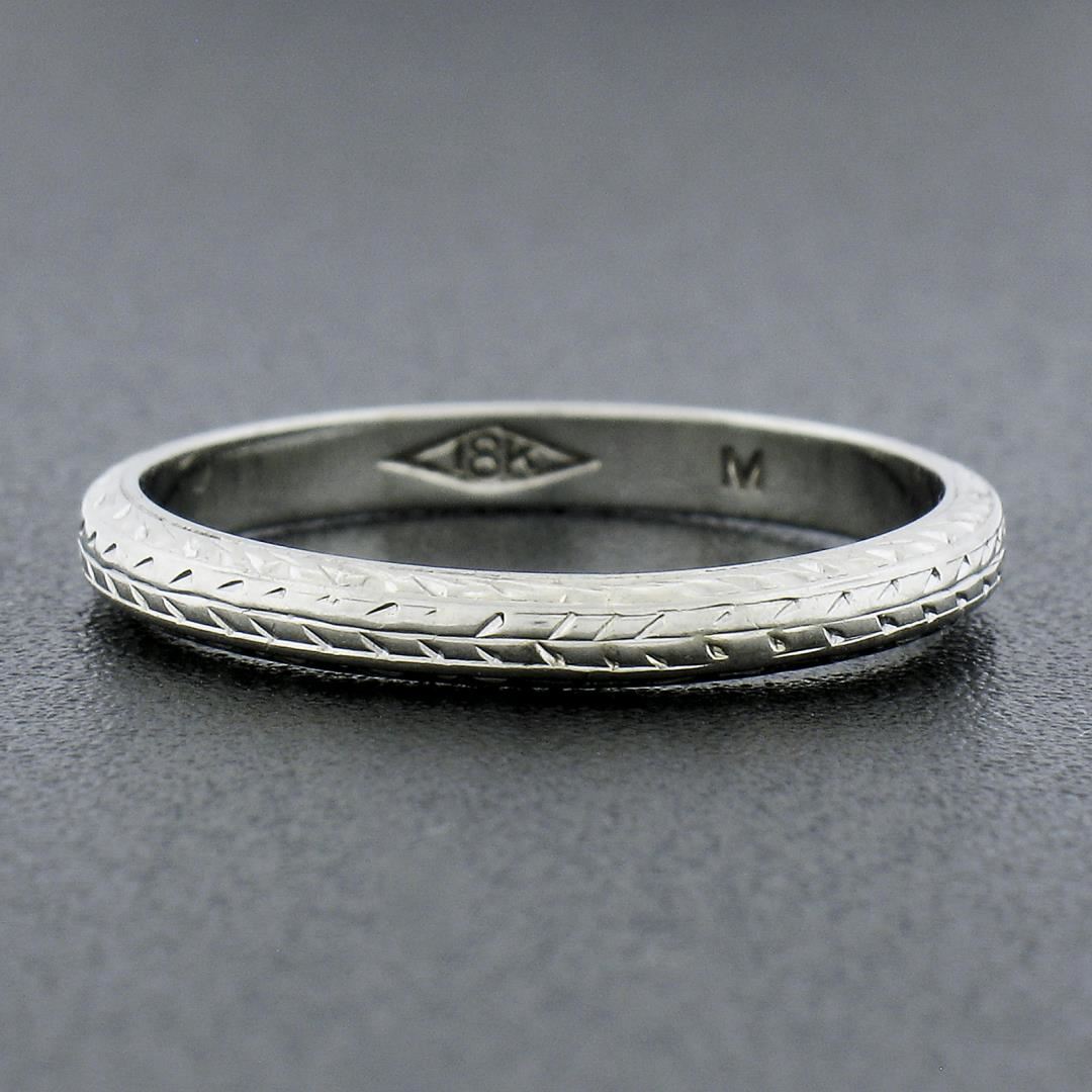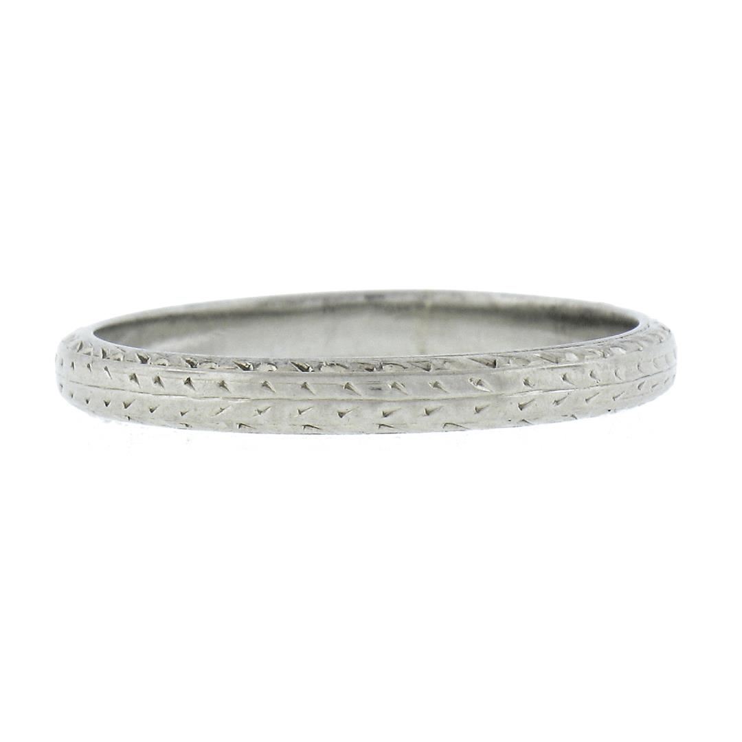 An antique solid 18k white gold band ring. The ring is size 5.75, weighs a total of 1.91 grams, and measures 2.3mm wide.