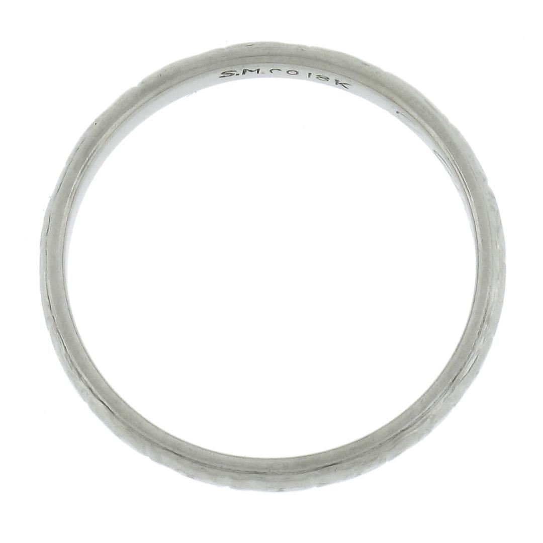 An antique solid 18k white gold band ring. The ring is size 8.5, weighs a total of 2.49 grams, and measures 2.6mm wide.