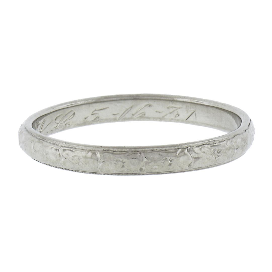 An antique solid 18k white gold band ring. The ring is size 8.5, weighs a total of 2.49 grams, and measures 2.6mm wide.