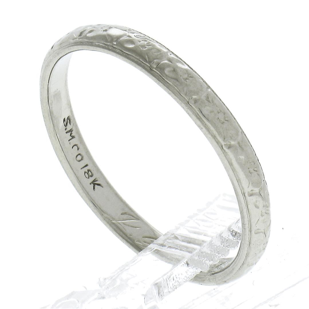 An antique solid 18k white gold band ring. The ring is size 8.5, weighs a total of 2.49 grams, and measures 2.6mm wide.
