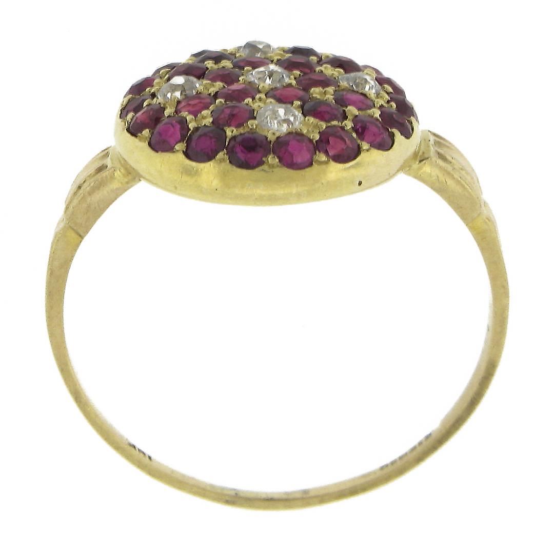 Antique 18K Yellow Gold 1.06ctw Old Cut Pave Set Ruby & Diamond Platter Ring