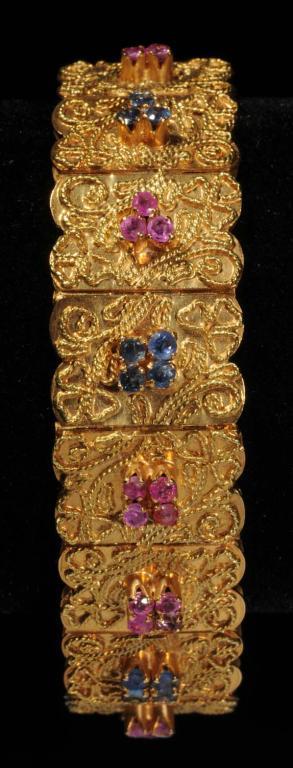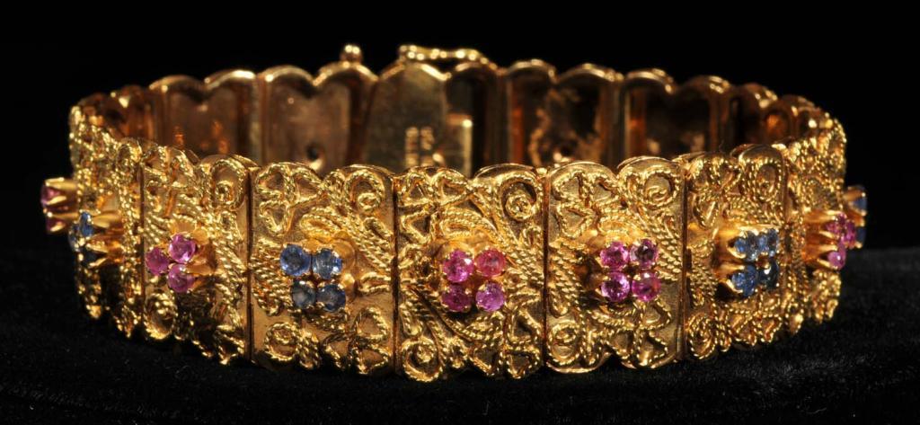Stones are pink and blue. Jewelry Condition (Excellent). Size 7 - 1/2" L.