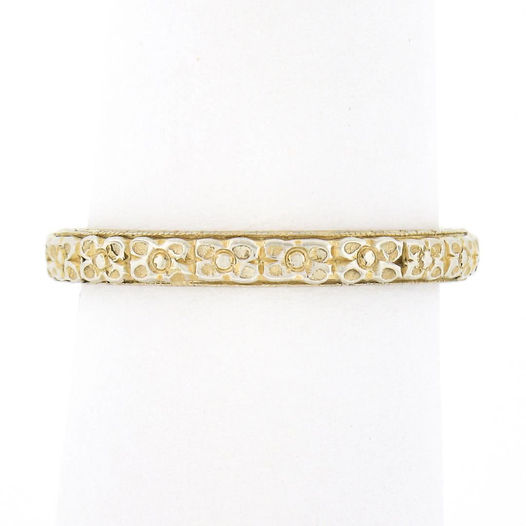 An antique solid 18k yellow gold band ring. The ring is size 6.5, weighs a total of 3.44 grams, and measures 2.6mm wide.