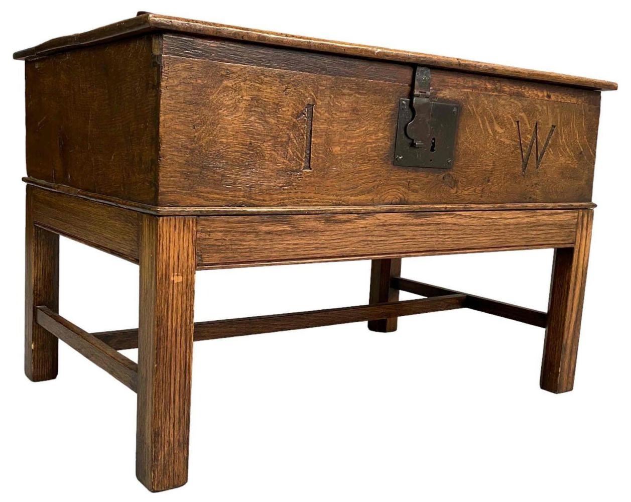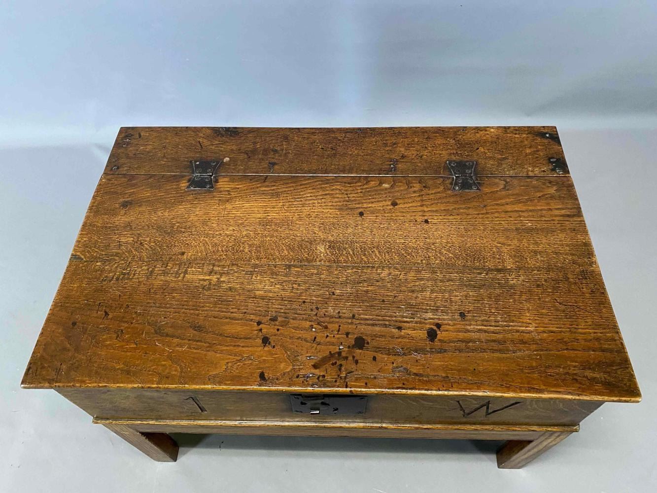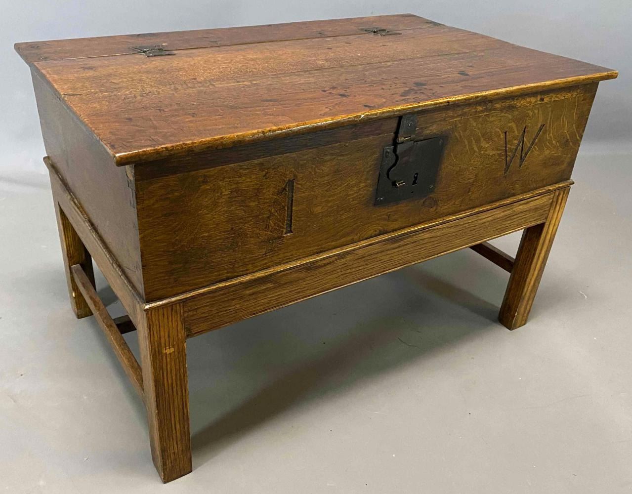 Antique Traveler's Trunk. Stand Marked FCP. Approximately 31.375L x 19.5W x 19.75H in.