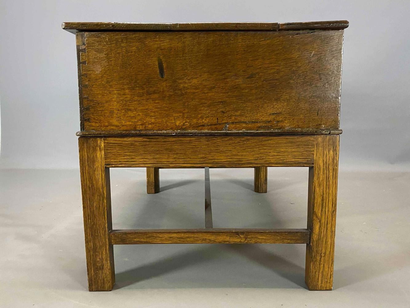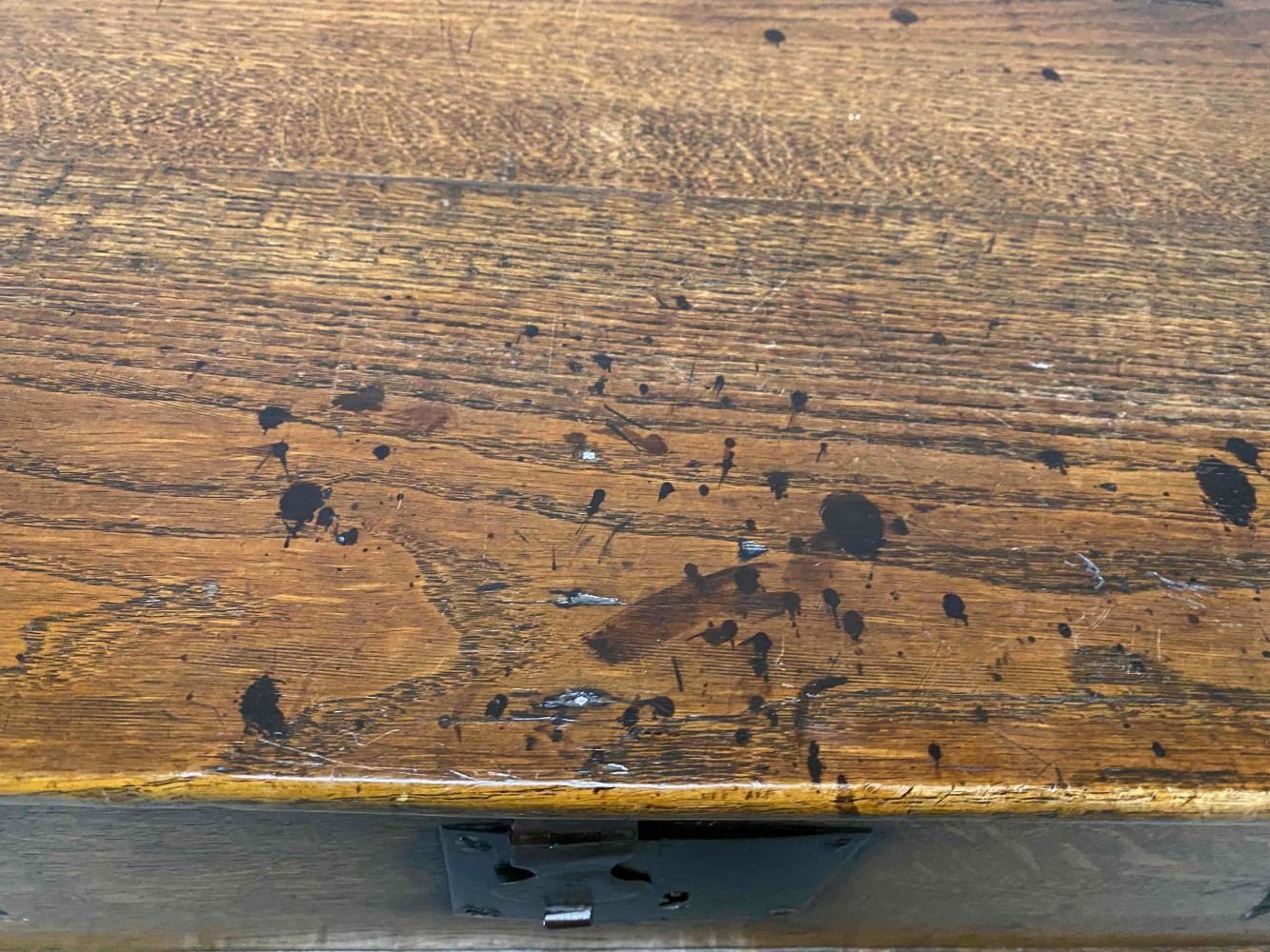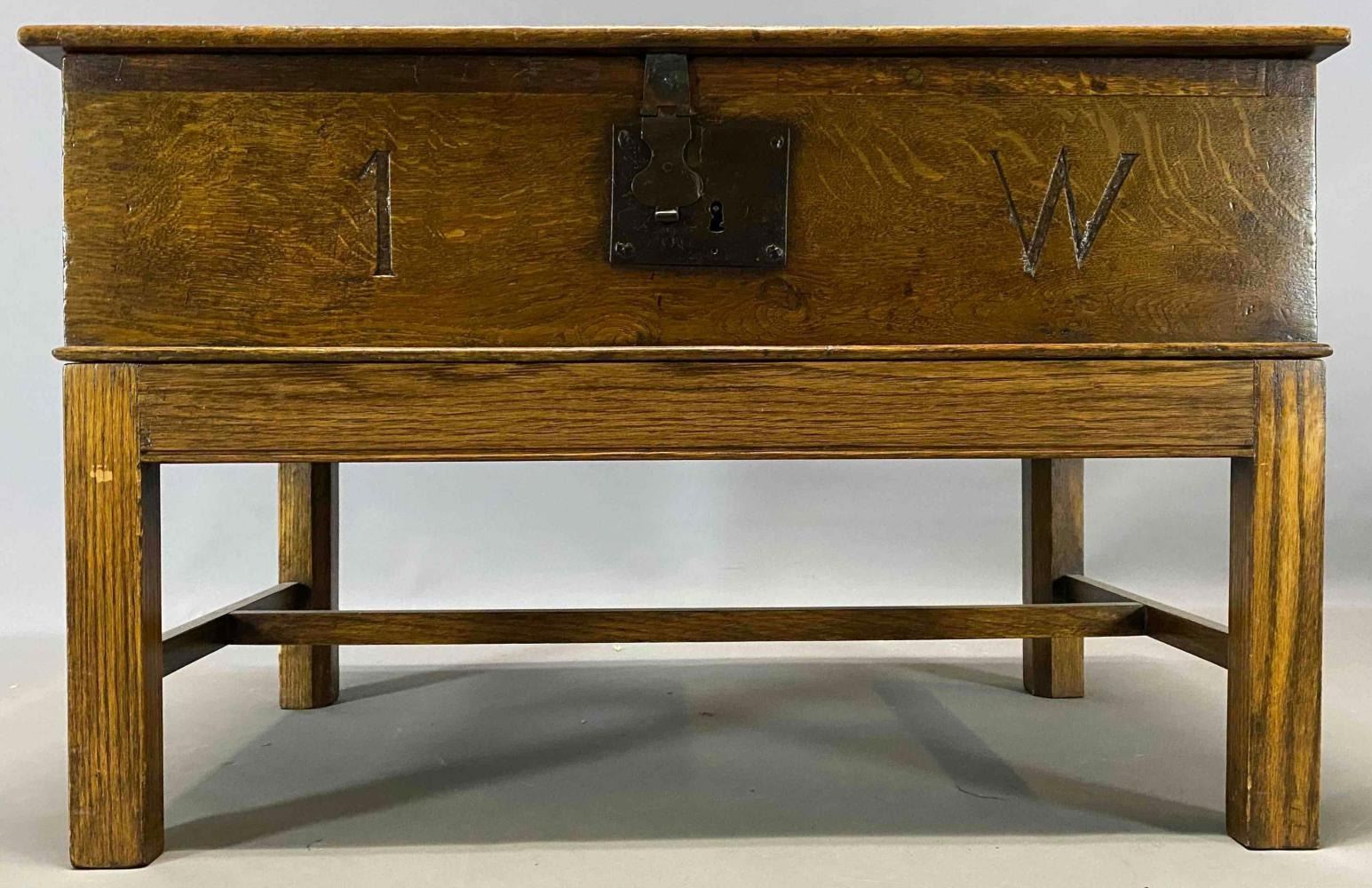 Antique Traveler's Trunk. Stand Marked FCP. Approximately 31.375L x 19.5W x 19.75H in.