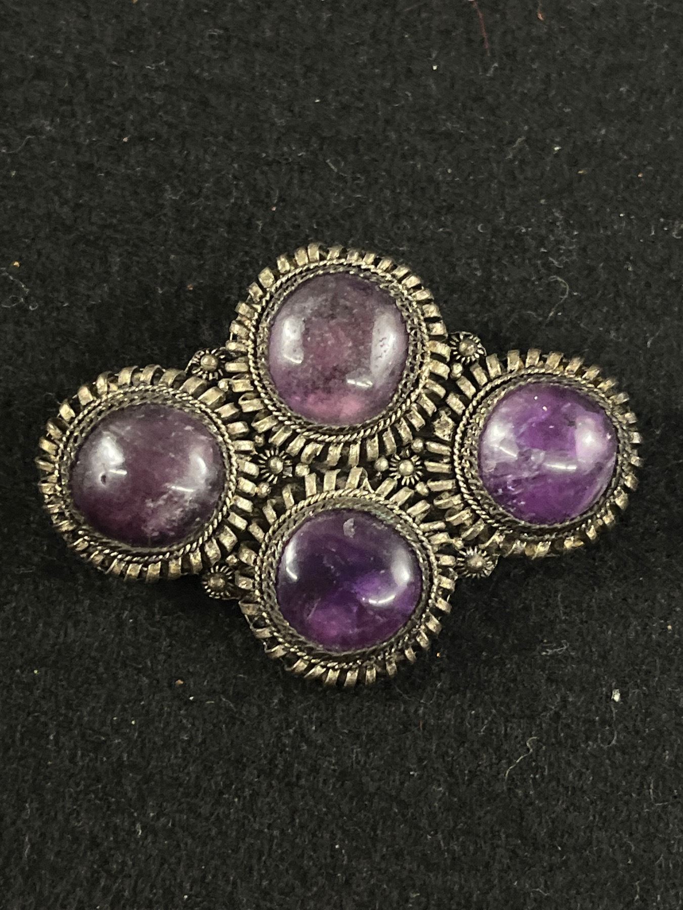 Antique 1900 Brooch with Genuine Amethyst Stone Set in Silver