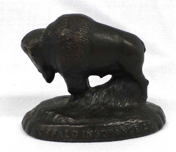 Antique 1920s Buffalo Insurance Advertising Cast Iron Paperweight, measures 2'' x 3'' x 2.5''