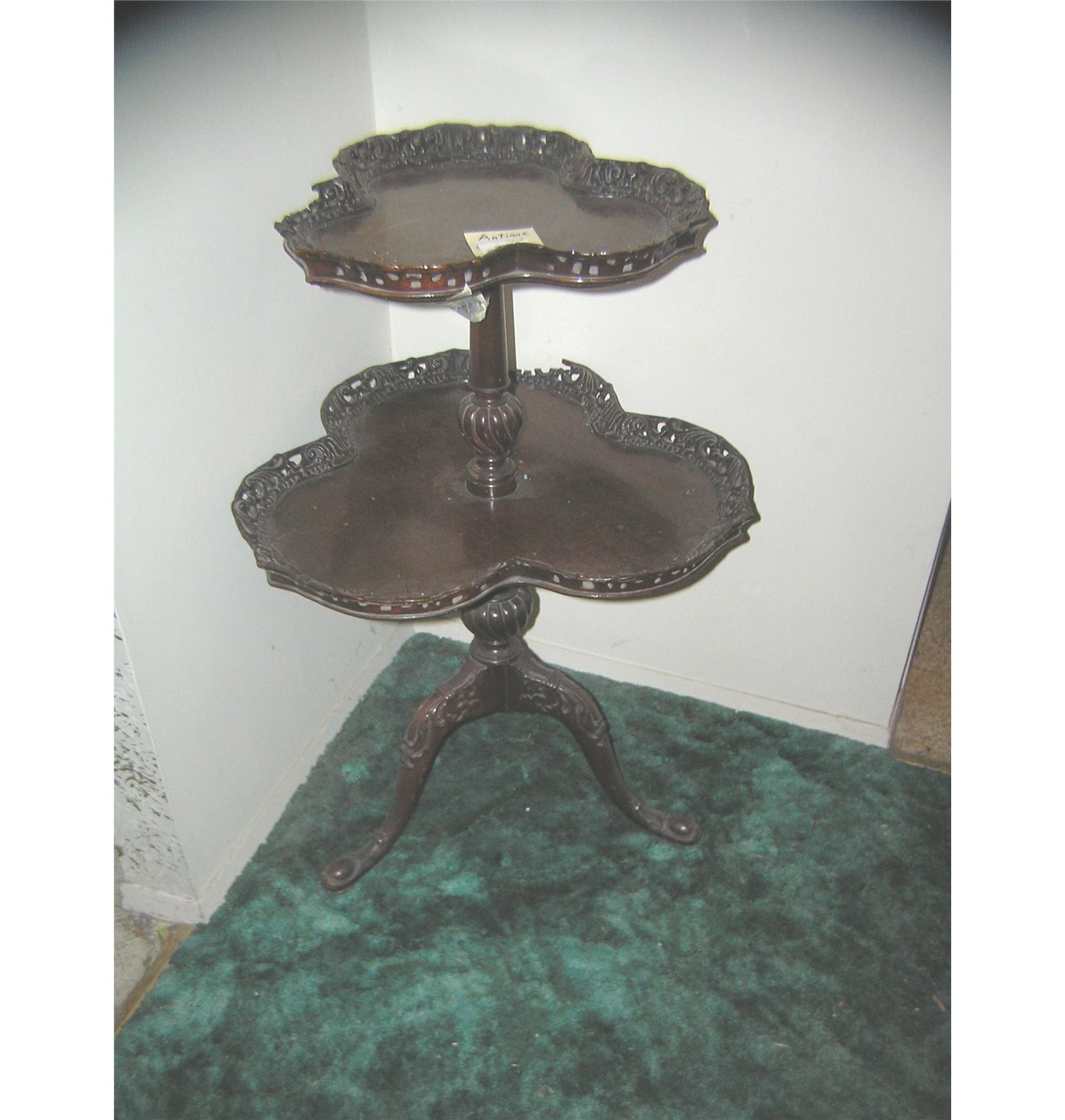 Antique 2 tiered table needs some repair otherwise very nice est. value $150.00-$200.00