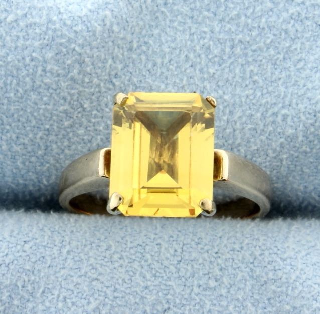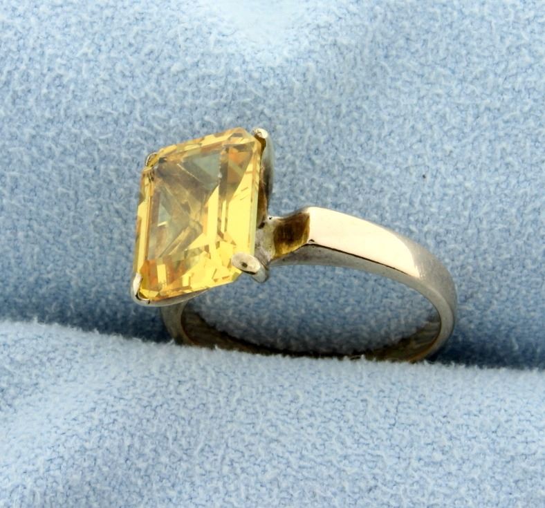 In 18K yellow gold, the 10x8mm emerald cut citrine has excellent color and clarity. Size 4 1/2 3.1g
