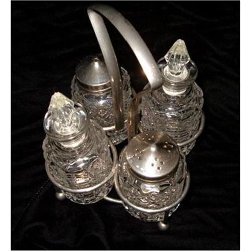 <tr><td>Title:Antique 4 BottleCastor Set in wire frame</td></tr>