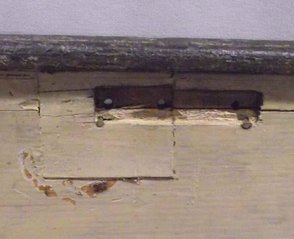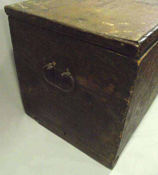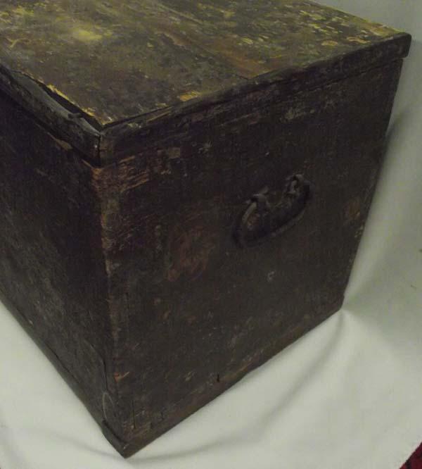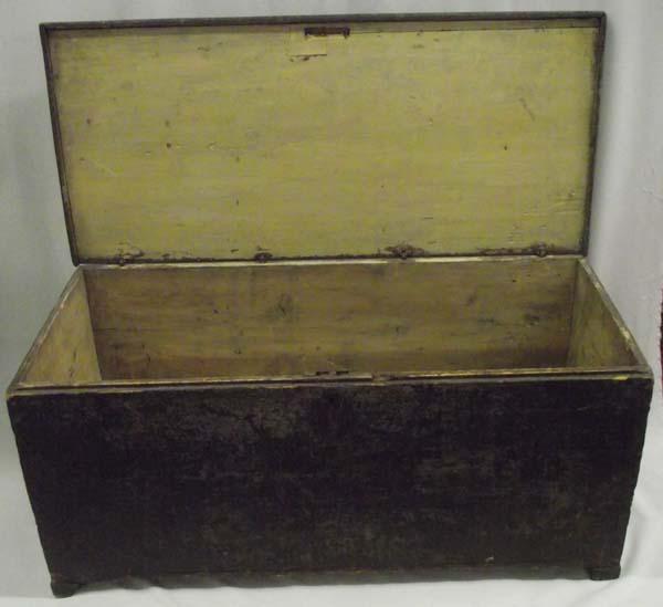 Antique 6 Board Trunk, has cast iron handles on each side, does not lock, measures approx. 38''L x 16.5''W x 17''H. MUST BE PICKED UP