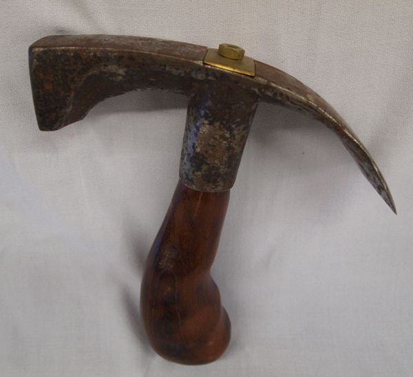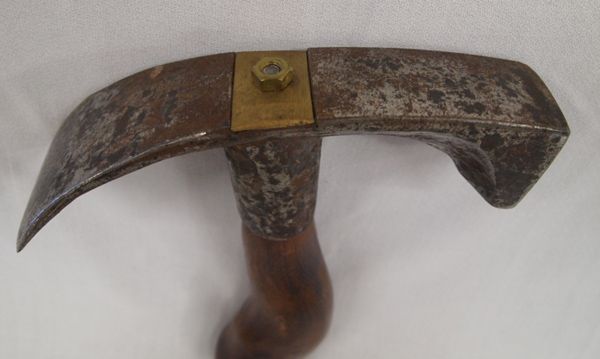Antique Adz Left Handed Wood Working Tool, measures 8''L x 7''W x 2.5''H, beautiful custom hand carved wood handle by Earl Mann